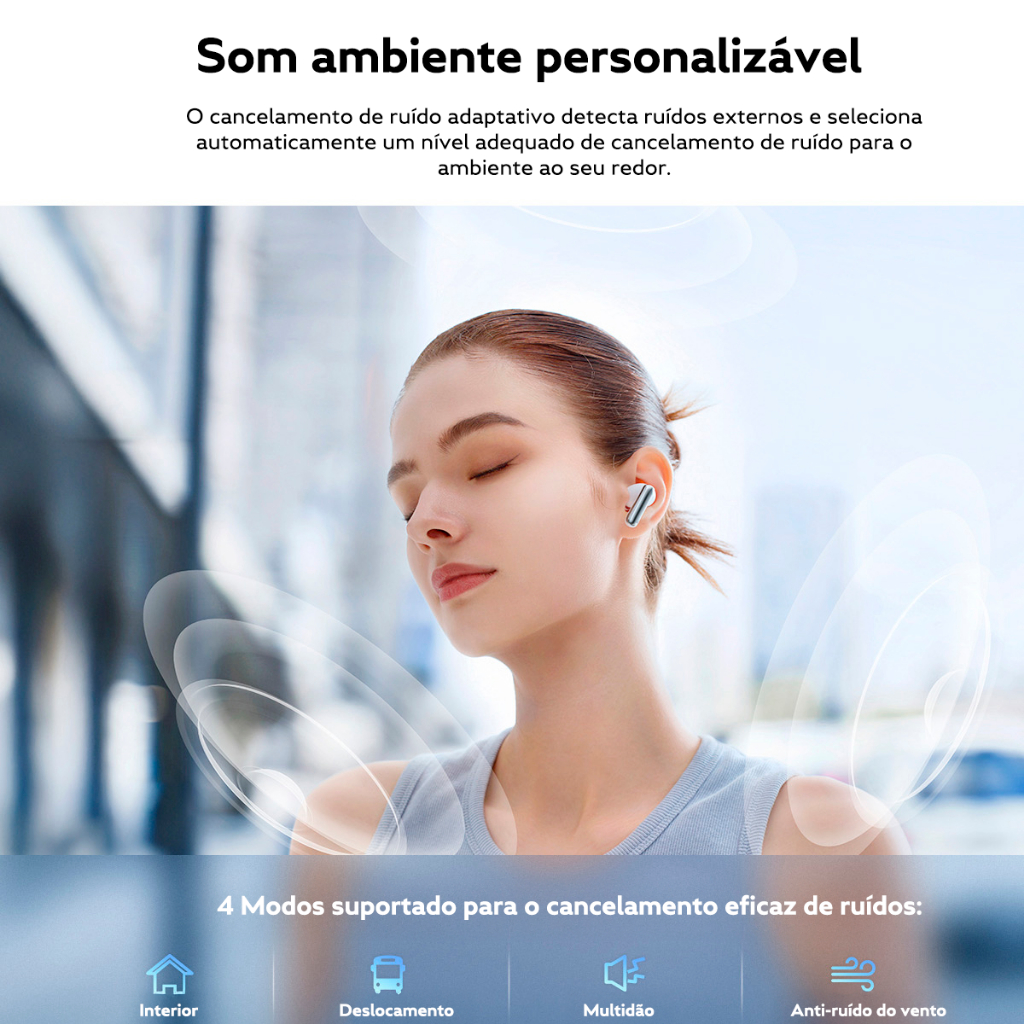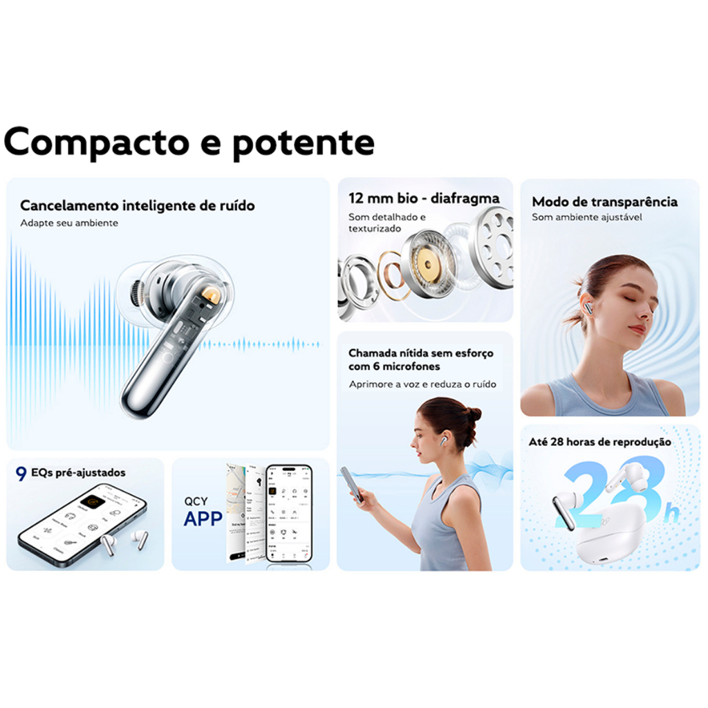 Fone de Ouvido QCY N50 ANC Melobuds Sem Fio , Bluetooth 5.4, Modo Transparência, 28 Horas de Reprodução Contínua, IPX4