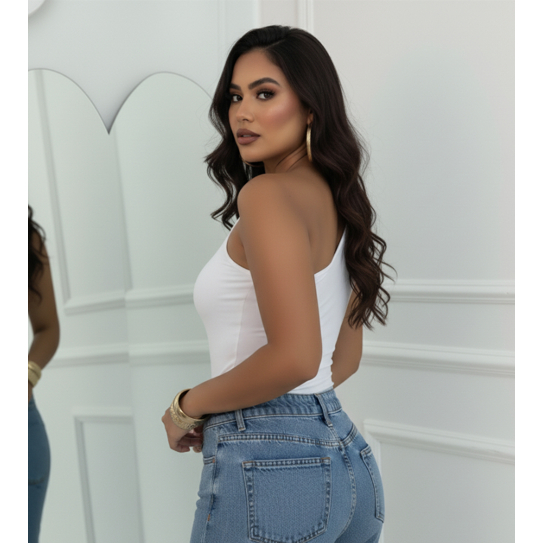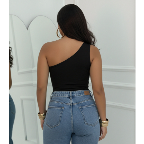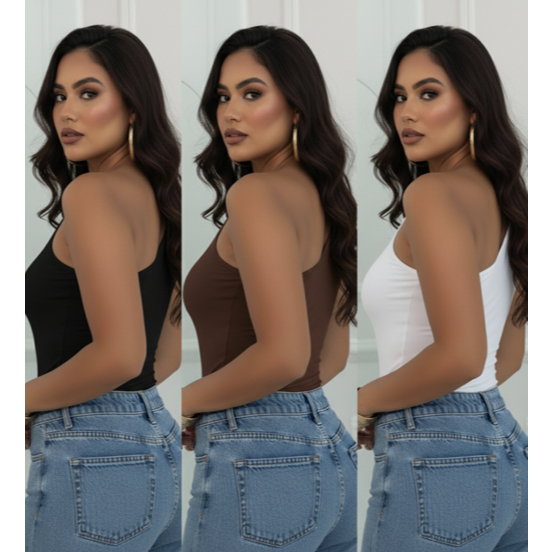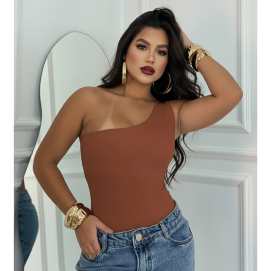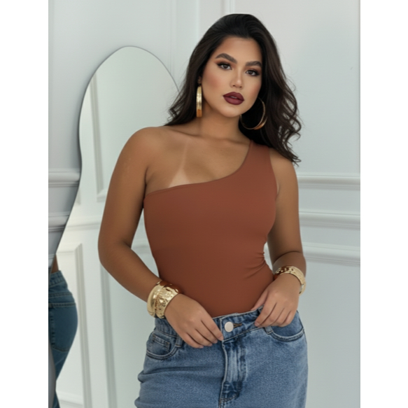 Kit Body Feminino Nula Manca Em Suplex Um Ombro Só Elegante Liso Casual Bori Confortável Com Forro Duplo