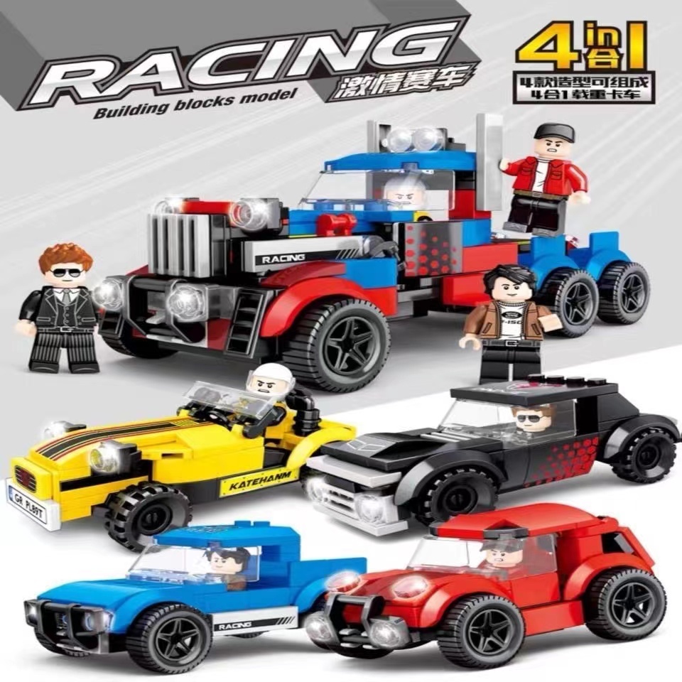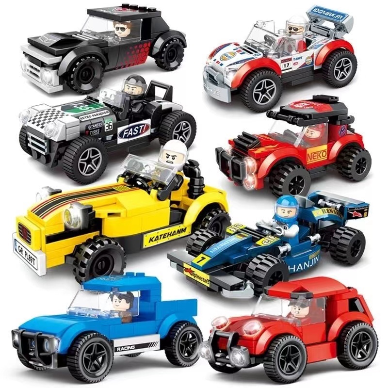 Blocos de construção de partículas pequenas compatíveis, carro de corrida, montagem educacional para crianças, brinquedos deslizantes, presentes para meninos