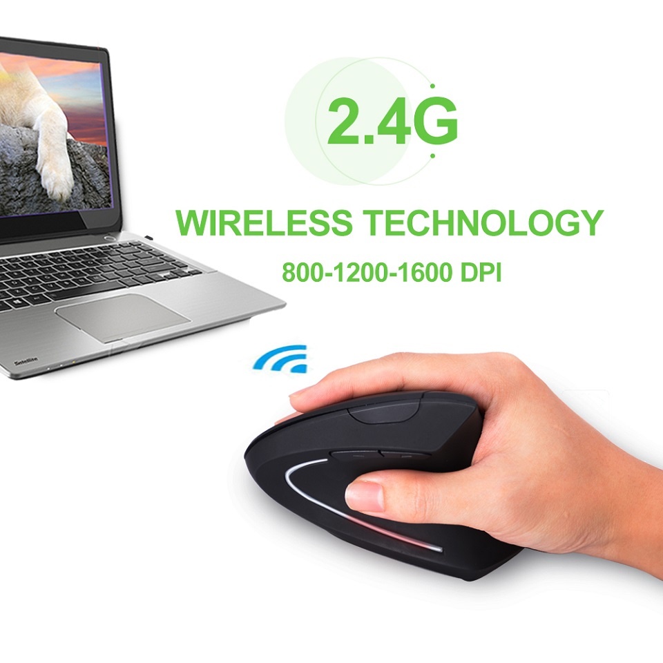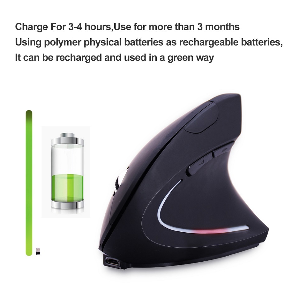 Rato Vertical Recarregável 2.4 Ghz Sem Fio 2400 DPI Para Computador Portátil Notebook
