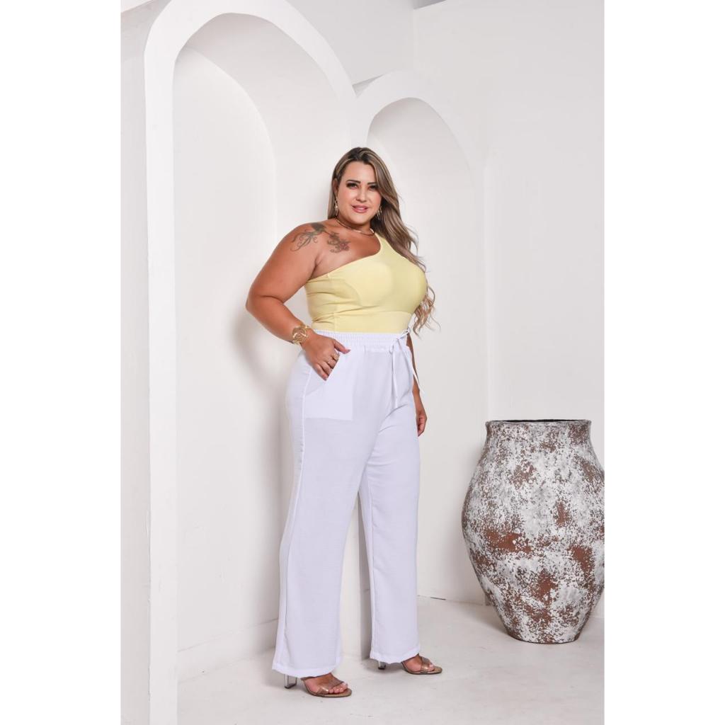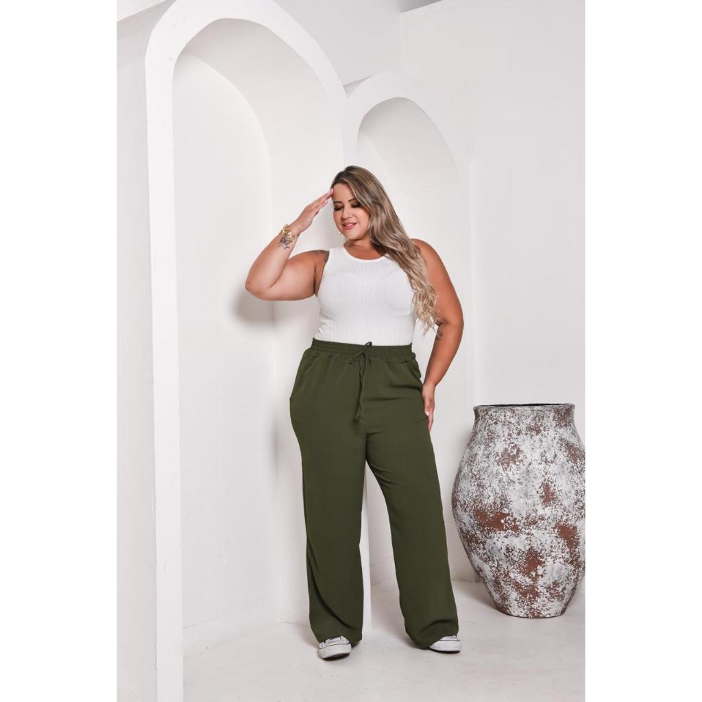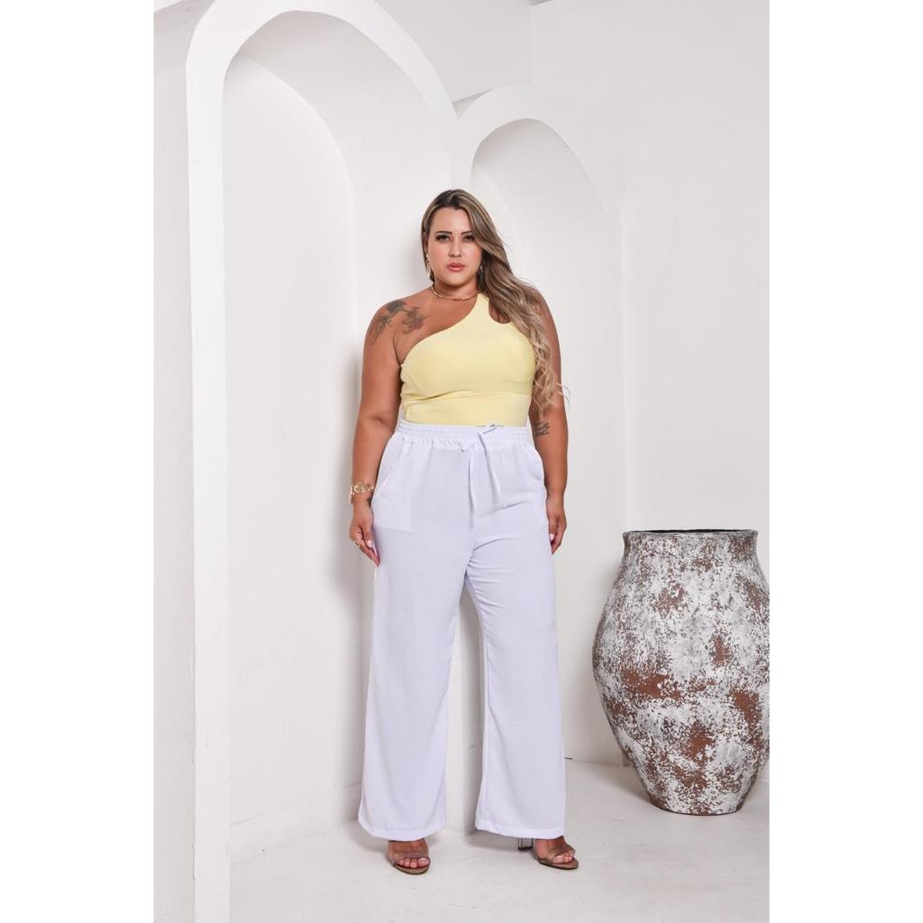 Calça Wide Leg Pantalona Plus Size Duna Alfaitaria Estilo Gringa Com Elástico Com Bolso Social