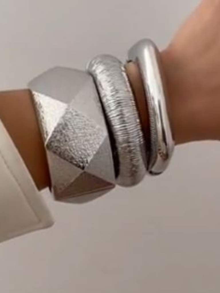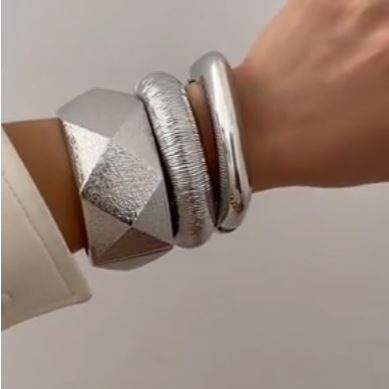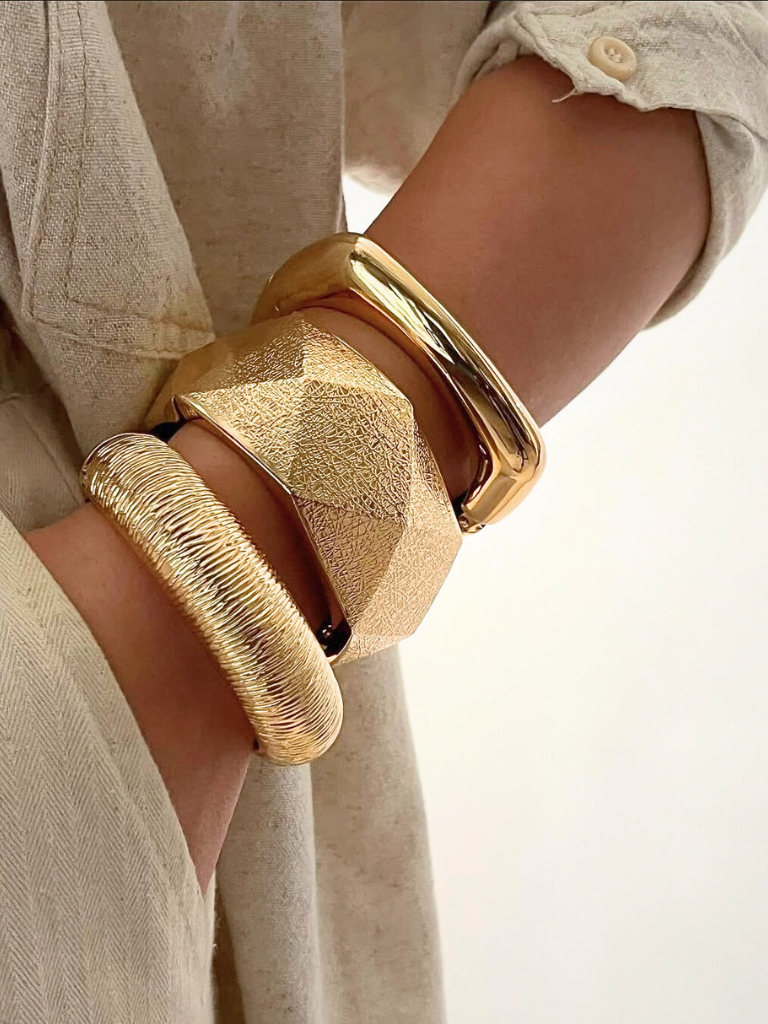 3 Peças Conjunto Braceletes Grossos Maximalista Dourados Prata Bracelete Grande Acessórios Femininos