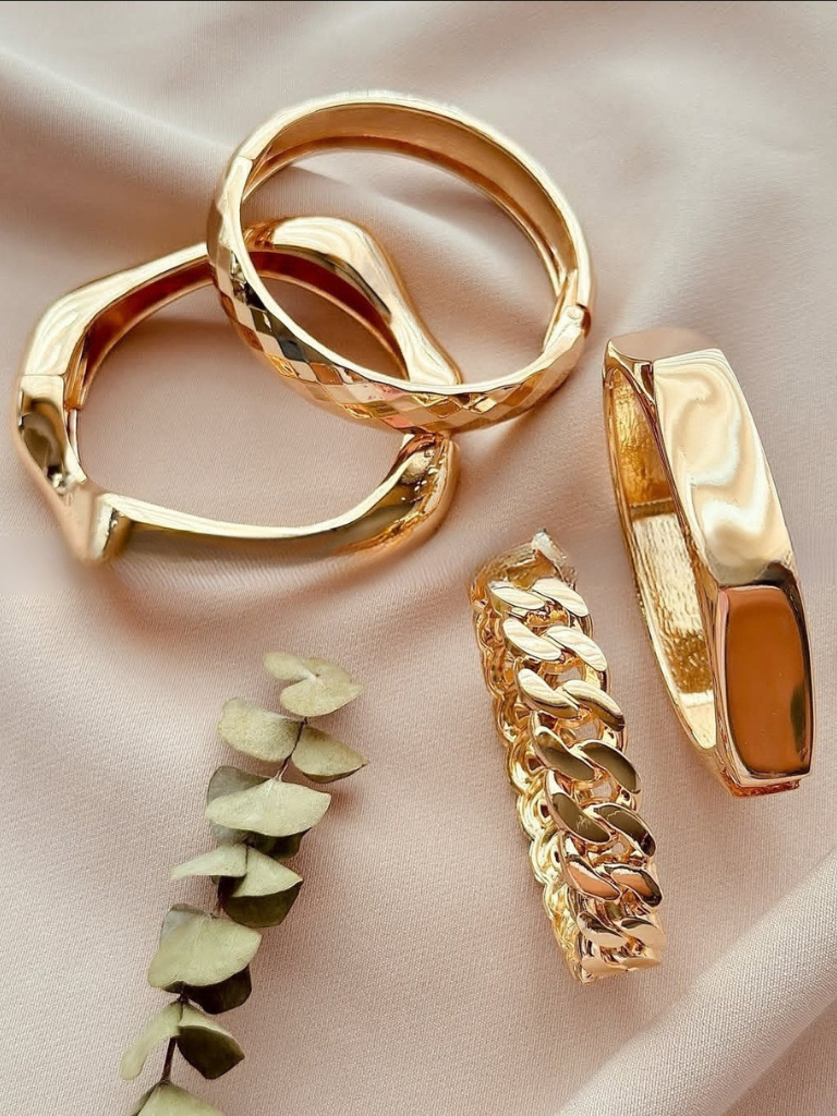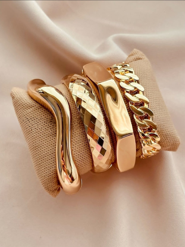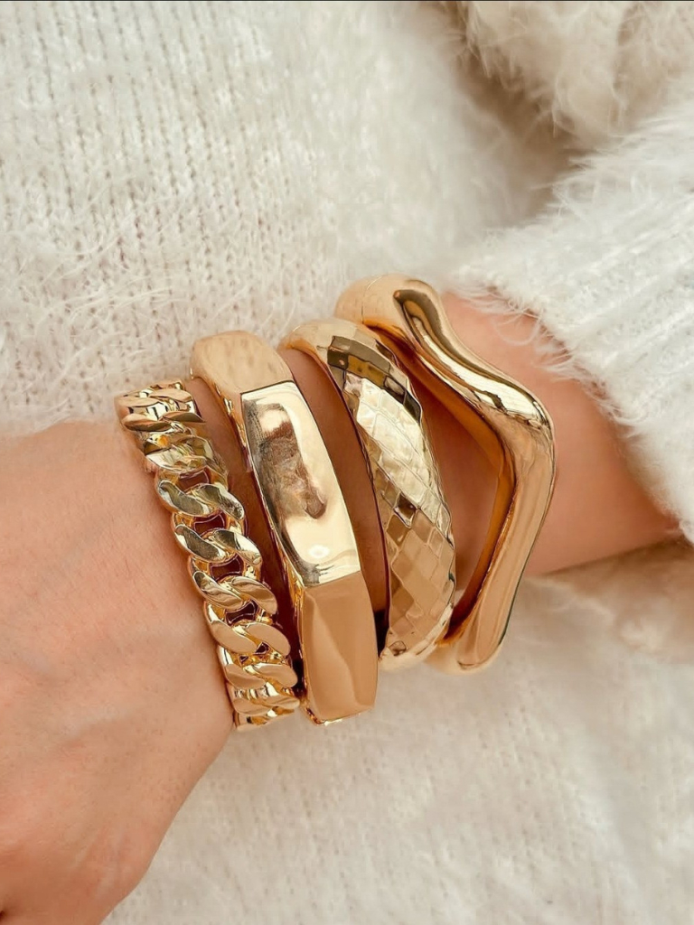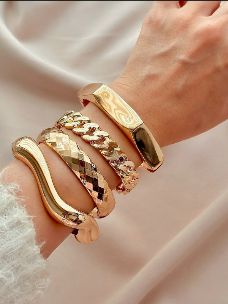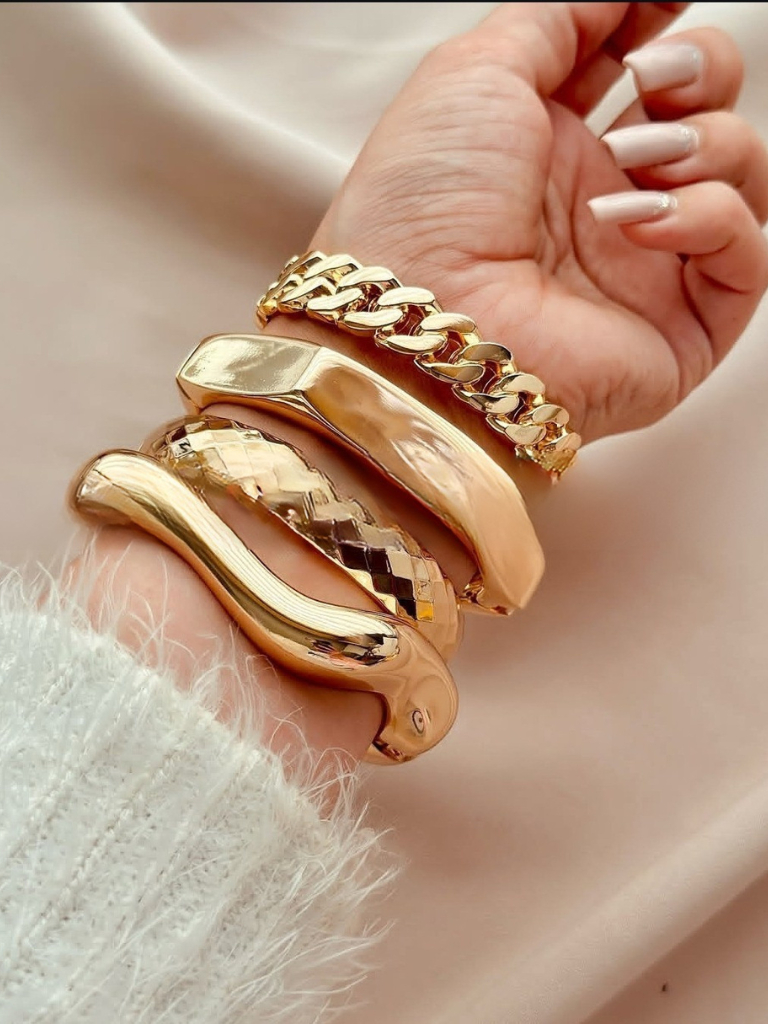 Conjunto com 4 Braceletes Grossos Maximalista Dourado Femininas Bracelete Maxi Acessórios Femininos