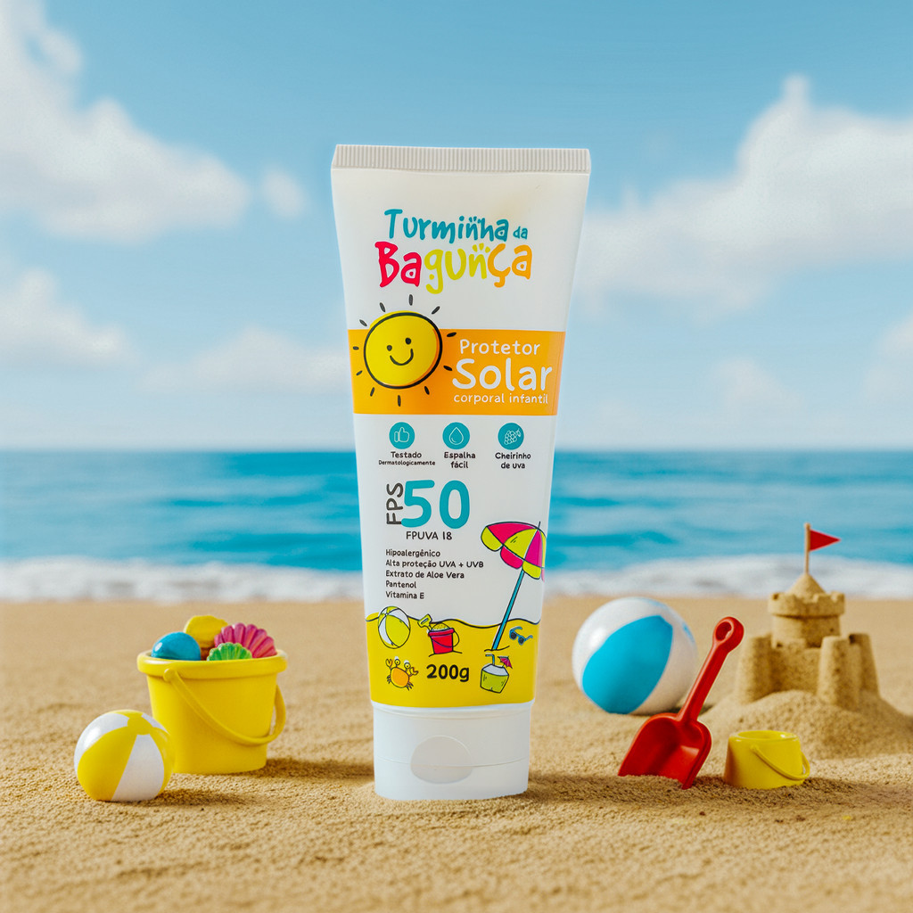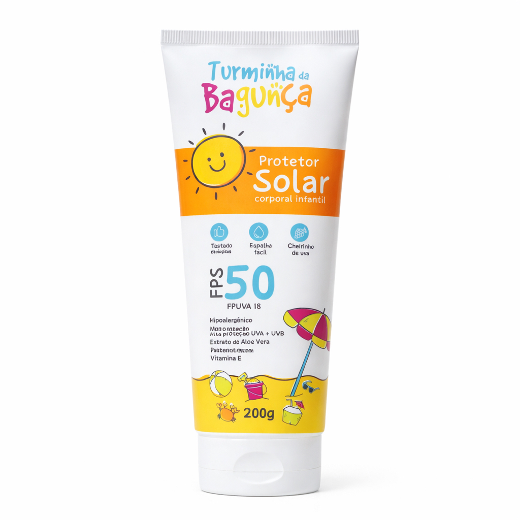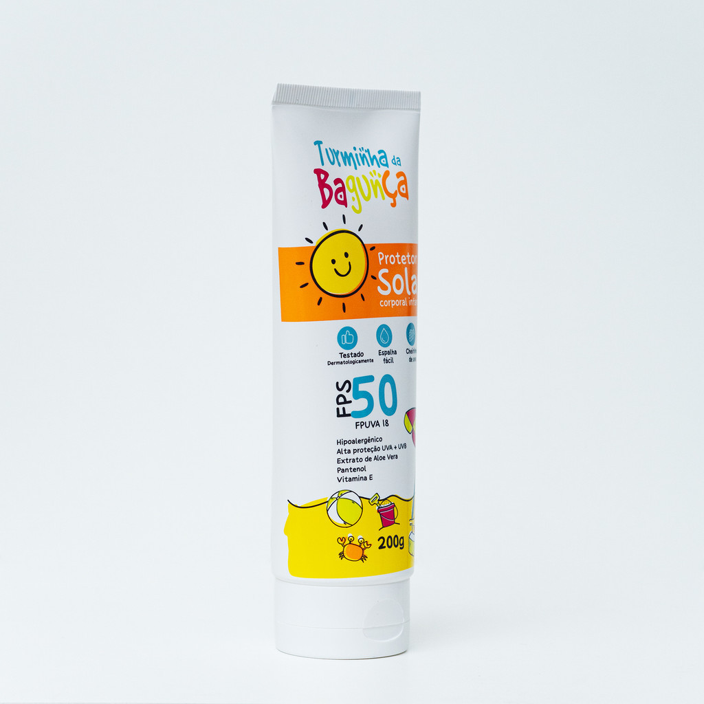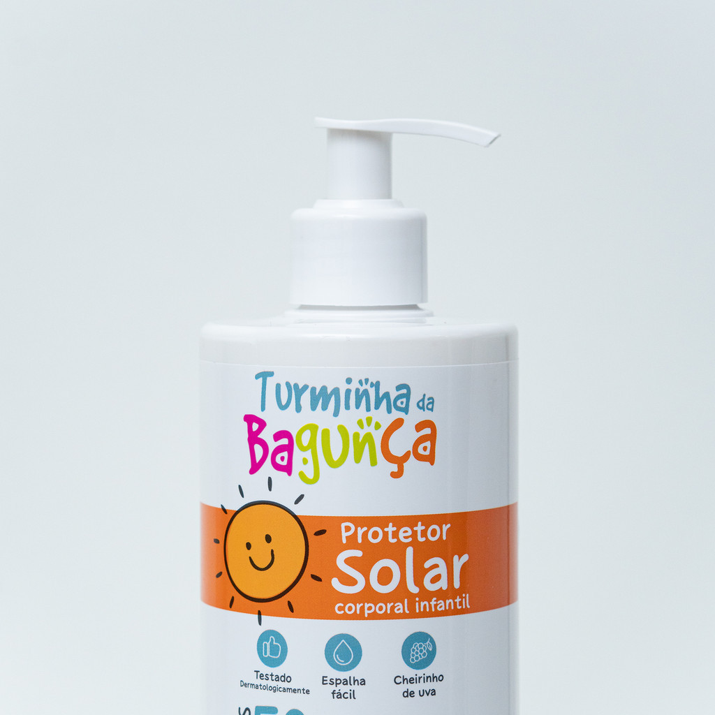 Protetor Solar Infantil FPS 50 Turminha da Bagunça UVA+UVB – Cheirinho de Uva – 200g e 500g