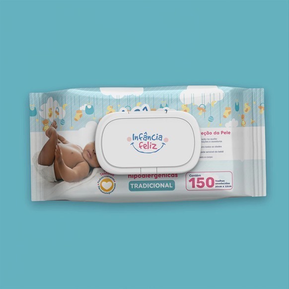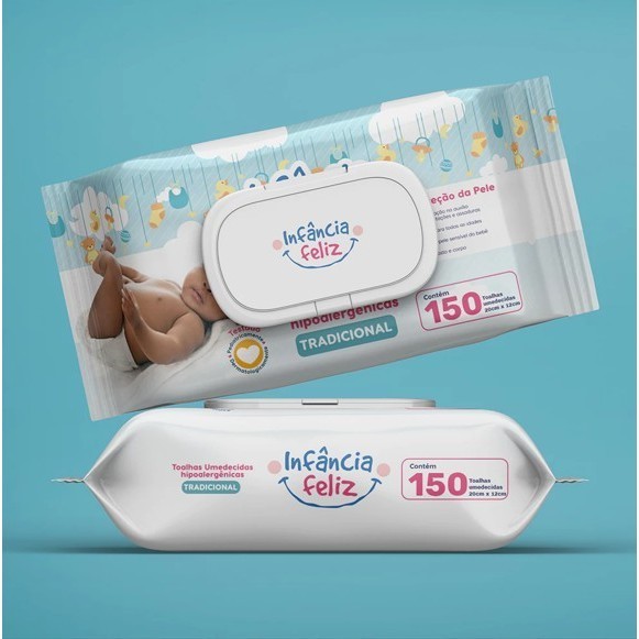 Kit 03 Pacotes Toalhas Umedecidas INFÂNCIA FELIZ - 150 Folhas com tampa