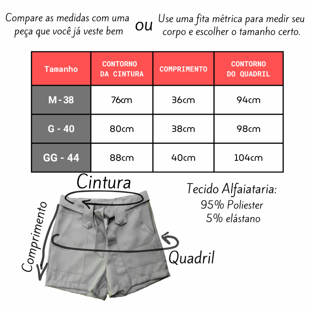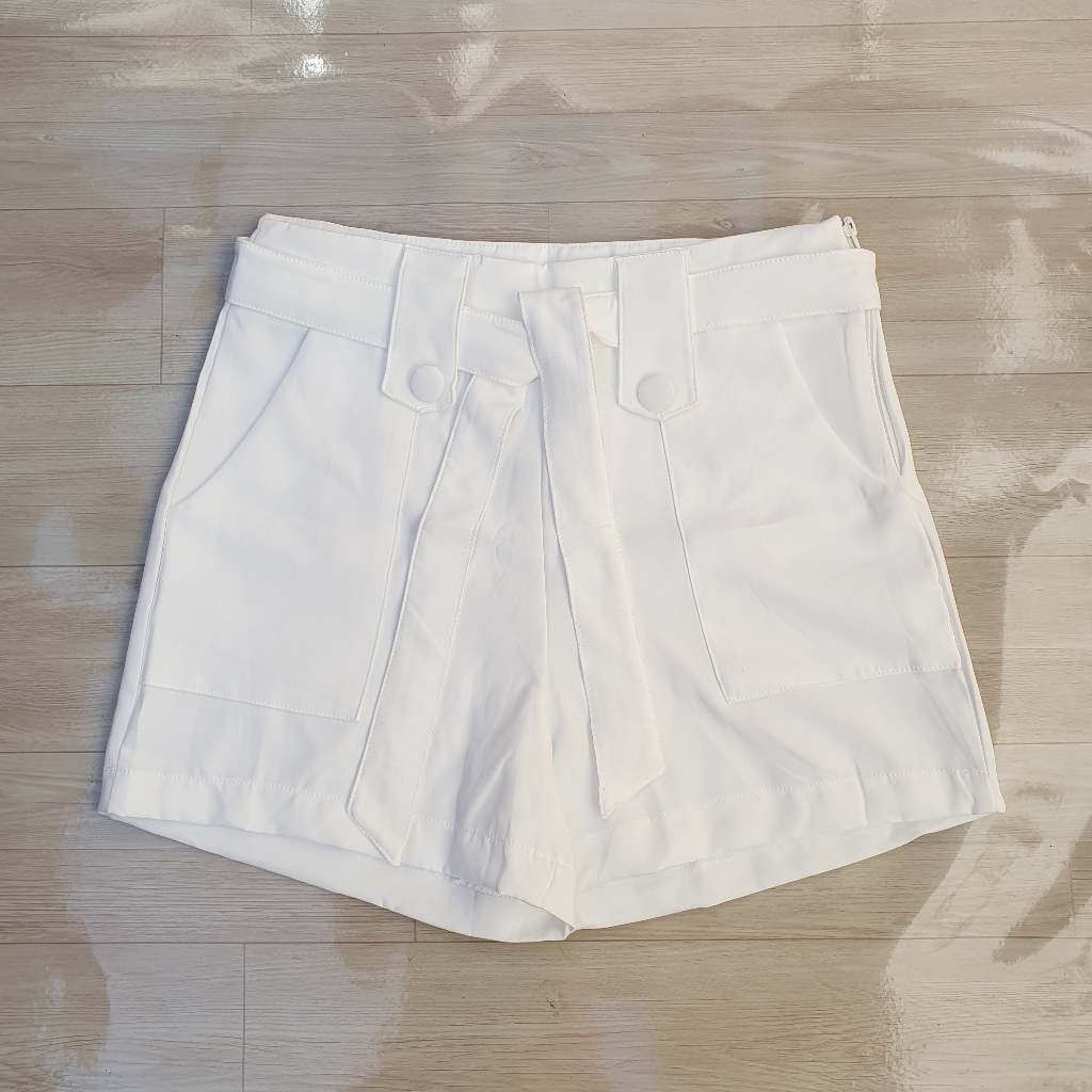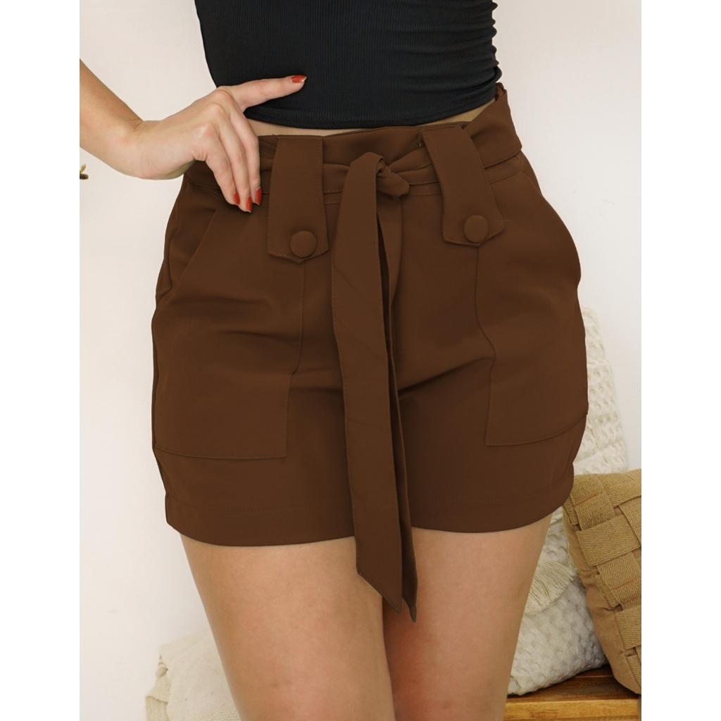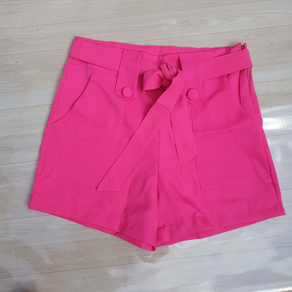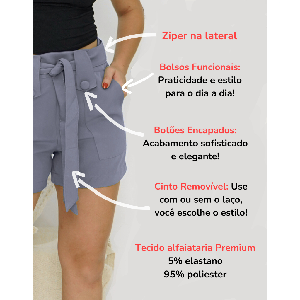 Short Alfaiataria Feminino Social Tendencia - Ziper na lateral e Laço removivel