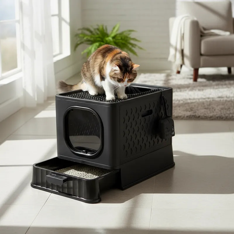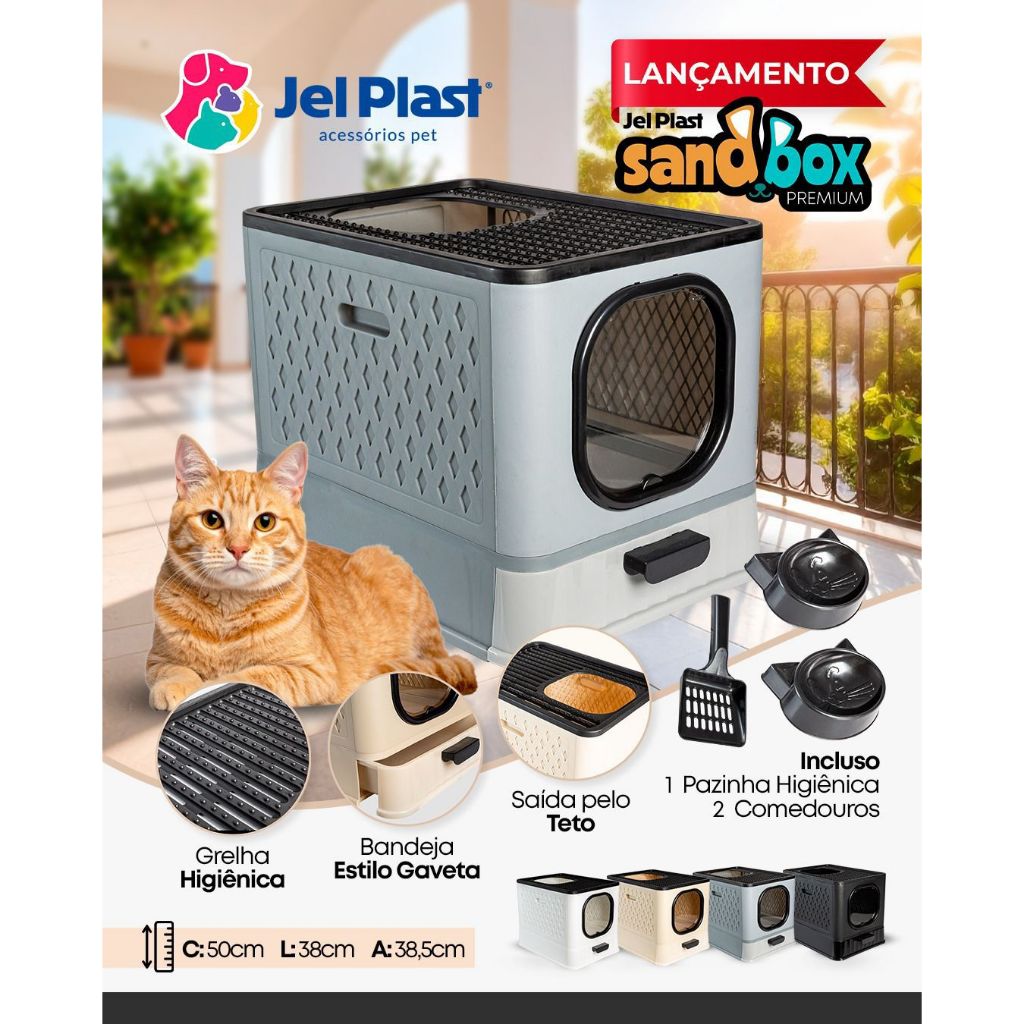 Caixa De Areia Fechada Premium Antiodor Para Gatos Sanitario Sandbox Jelplast Completa