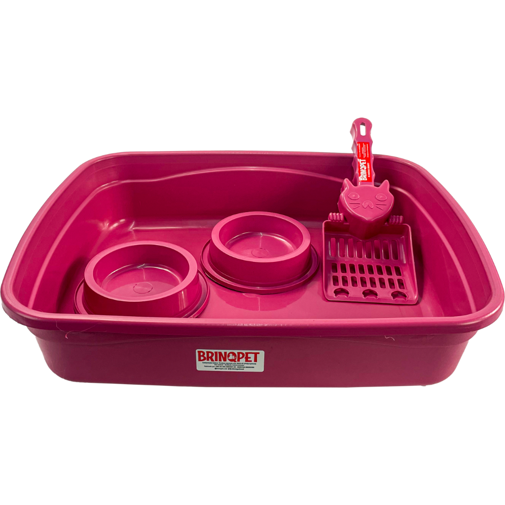 Bandeja Caixa Areia Gatos Brinqpet C/ Pazinha E 2 Comedouros