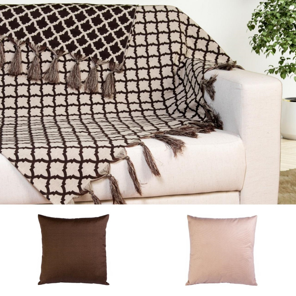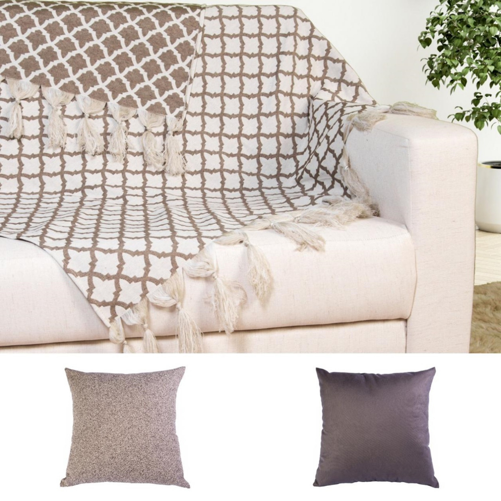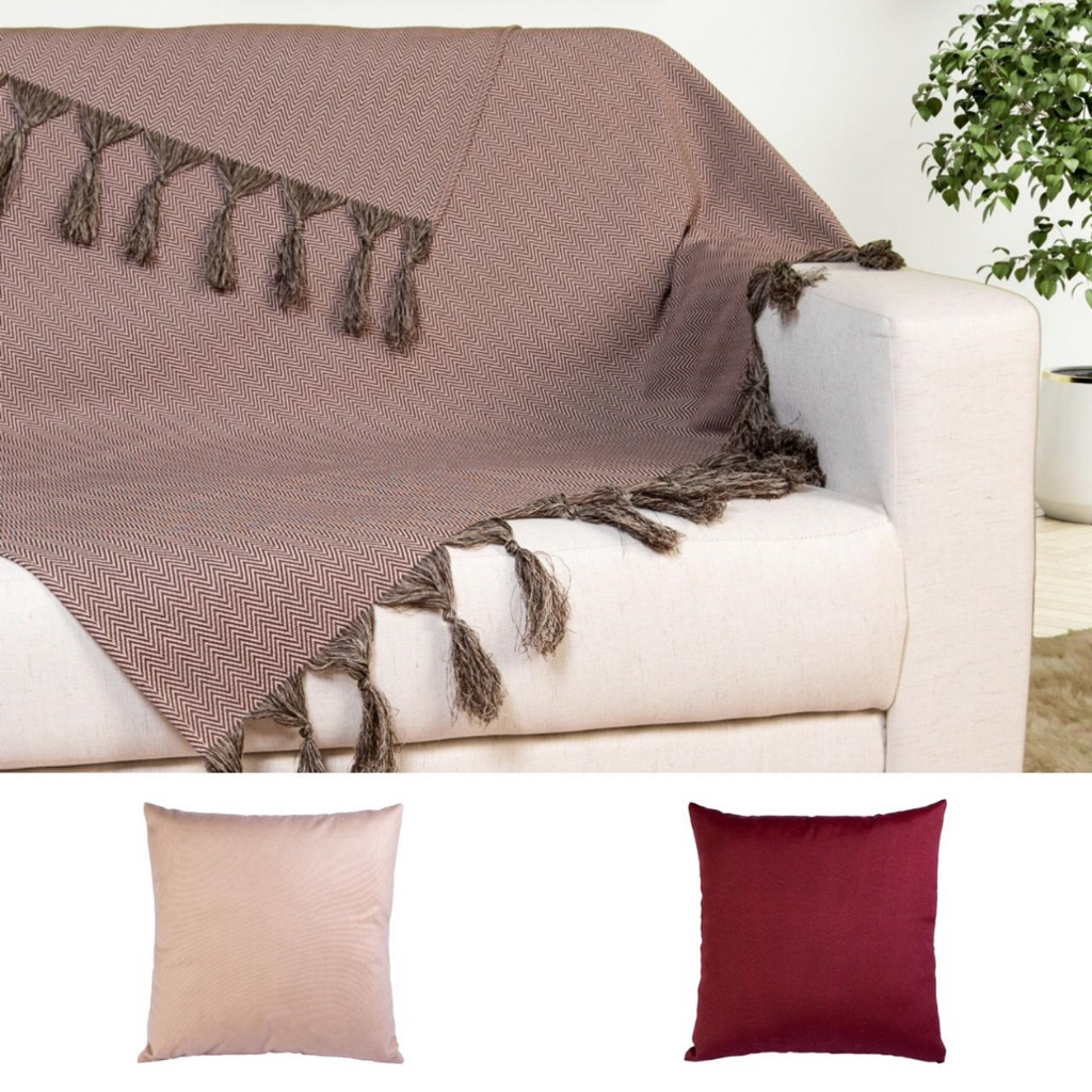Kit Manta Protetora Para Sofá Jacquard 1,40x1,80 com 2 Capas de Almofada