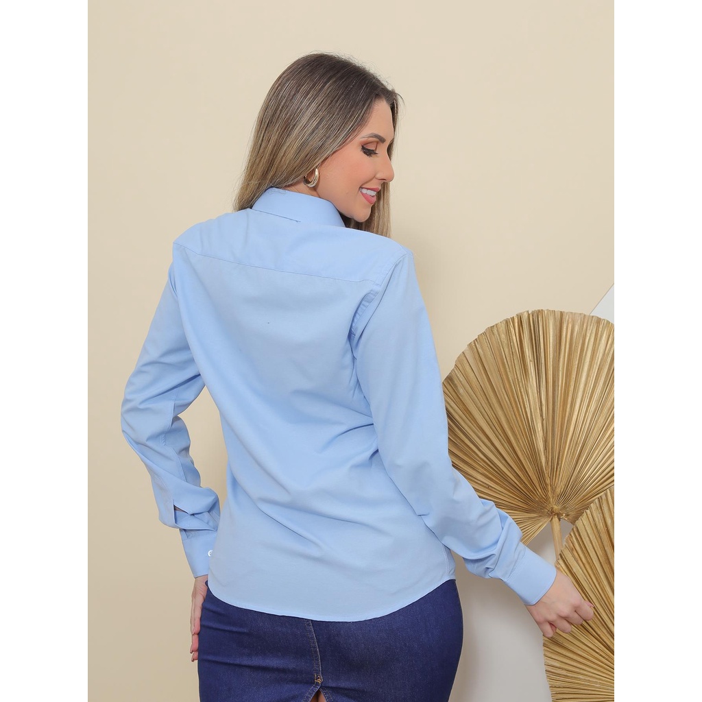 Camisa Social Feminina Manga Longa Slim Azul Bebê