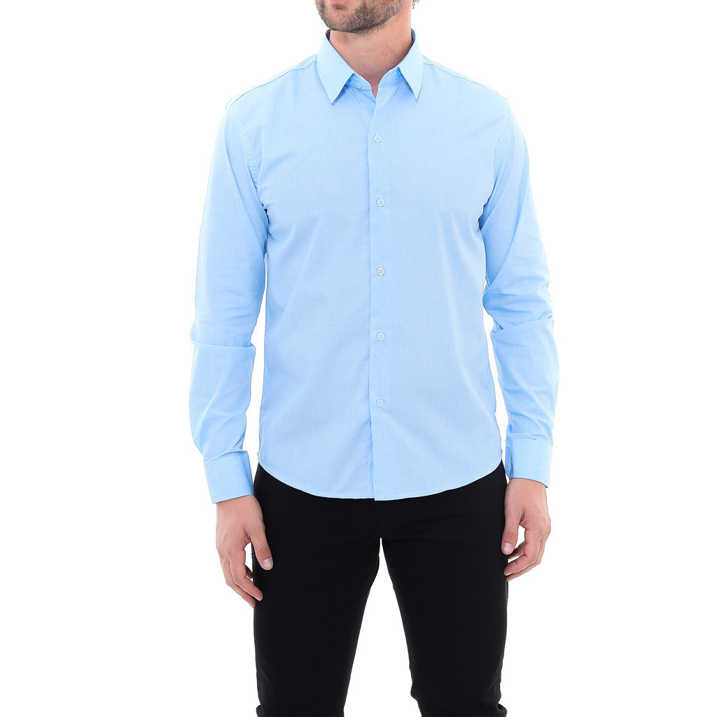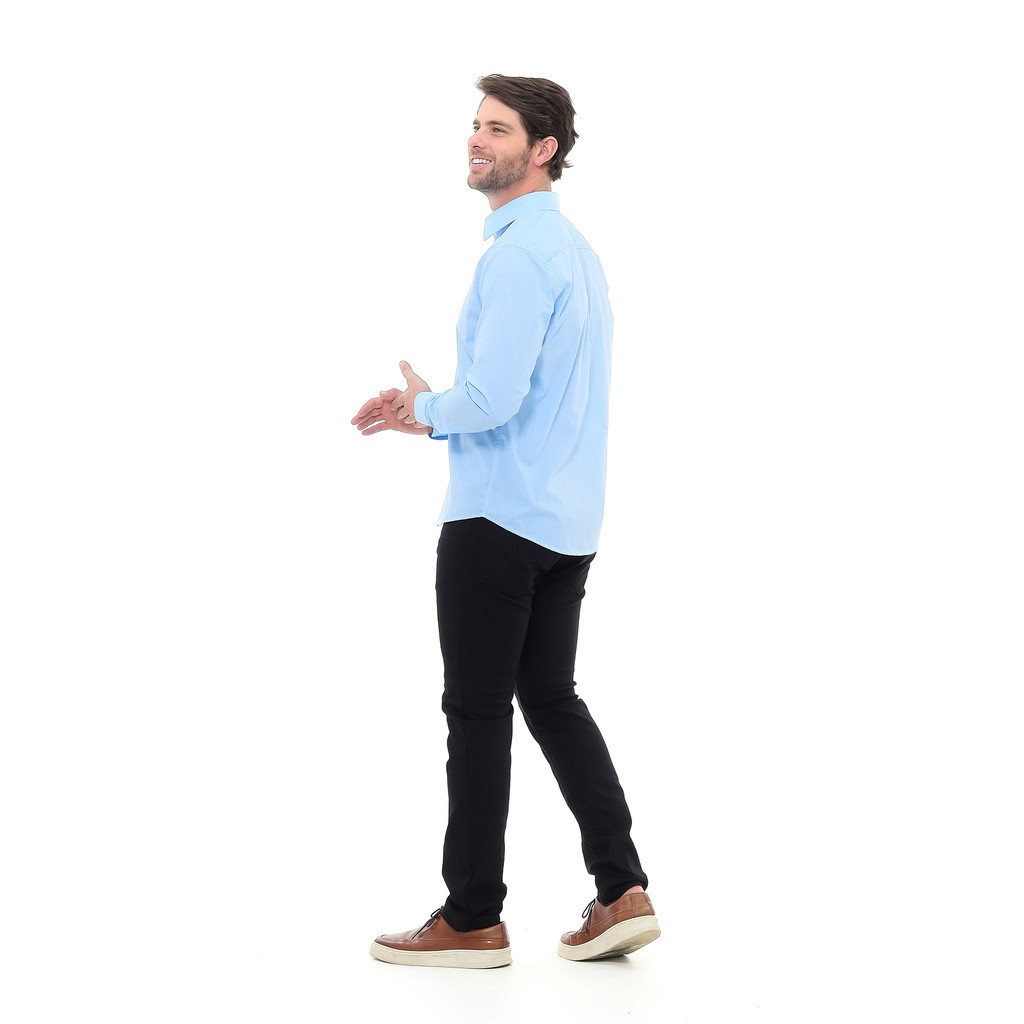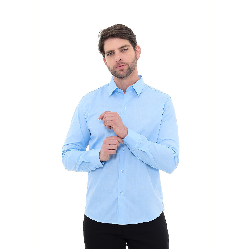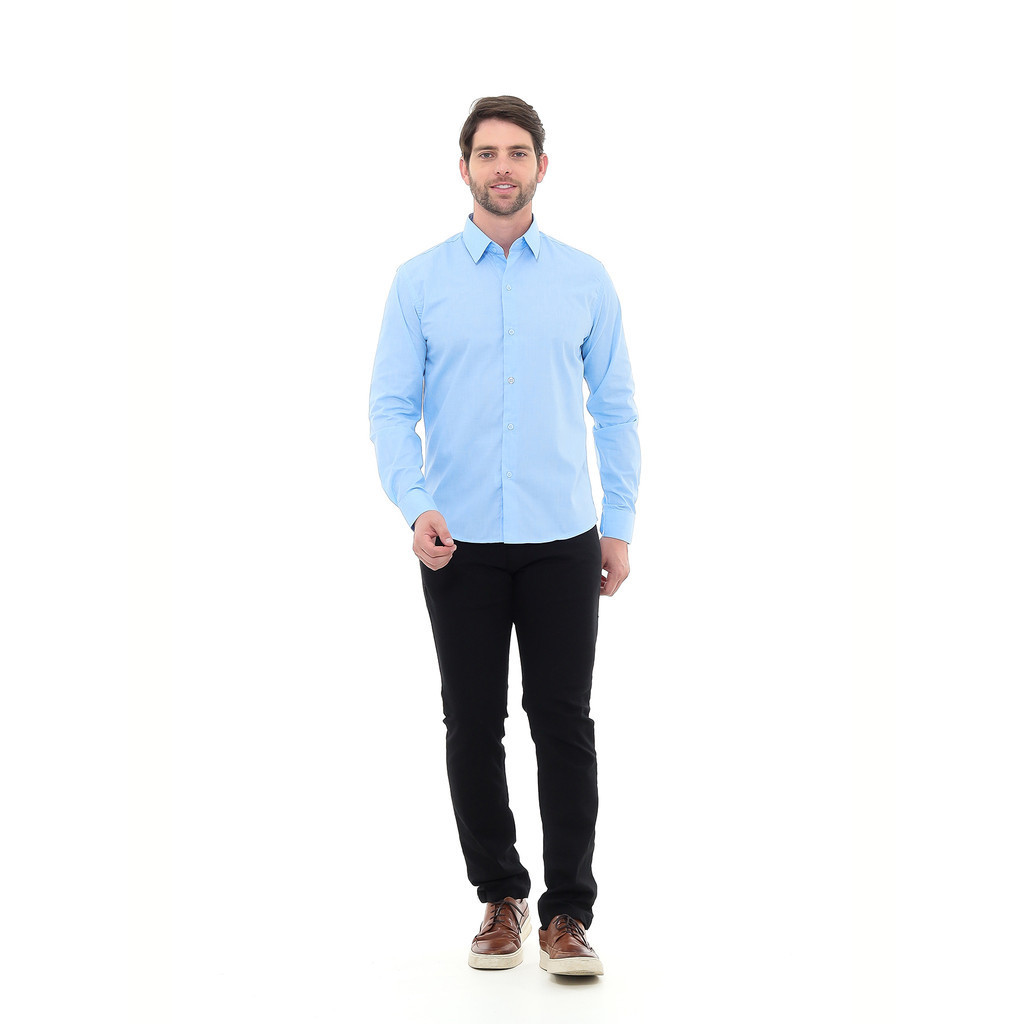 Camisa Social Masculina Premium Tipo Linho Azul Claro
