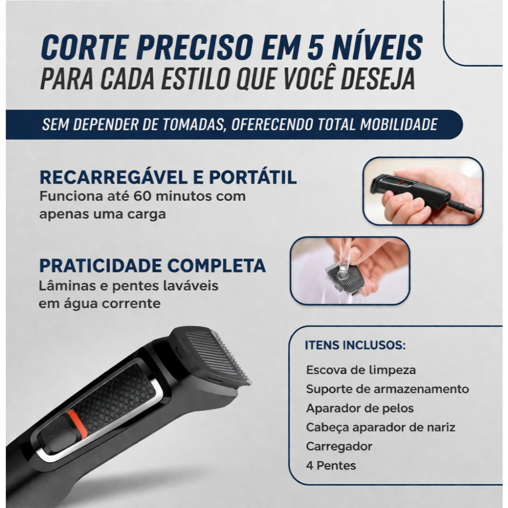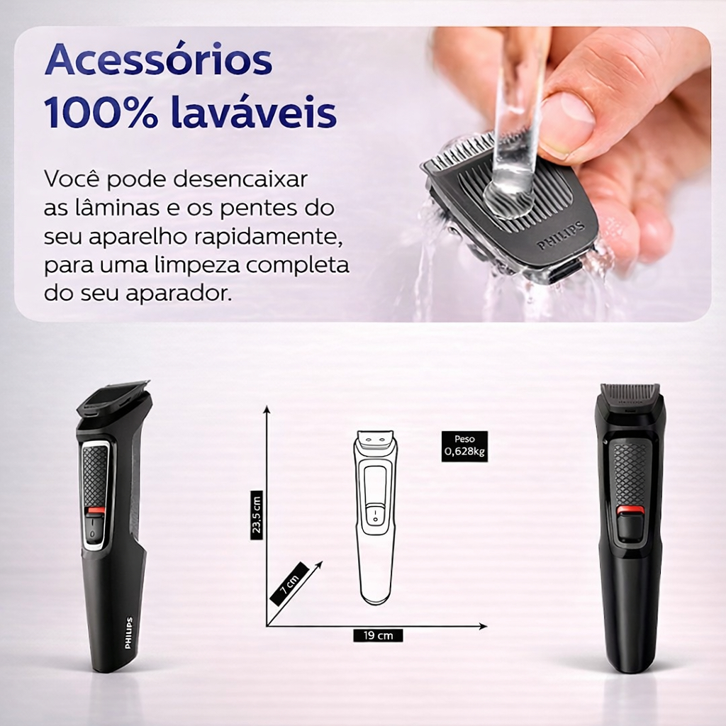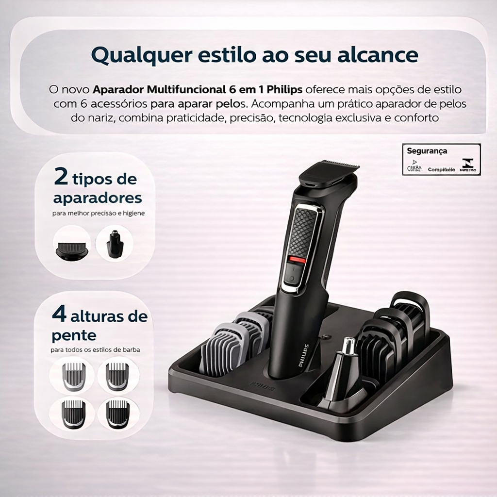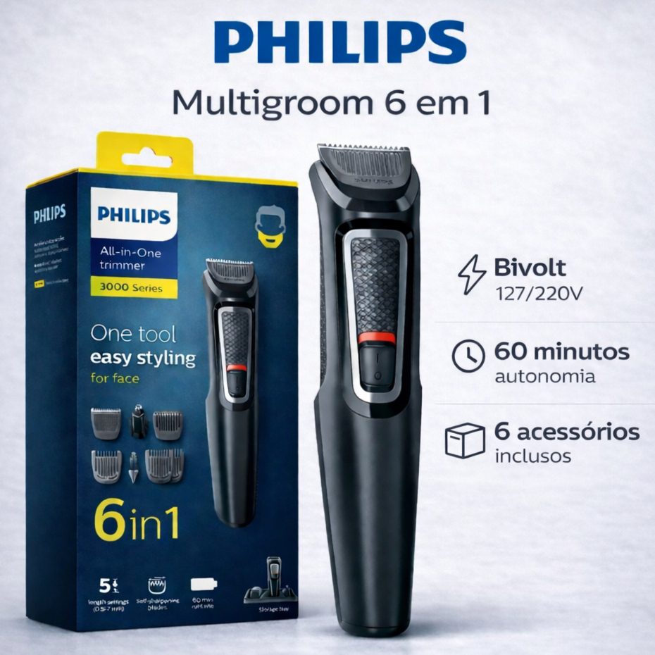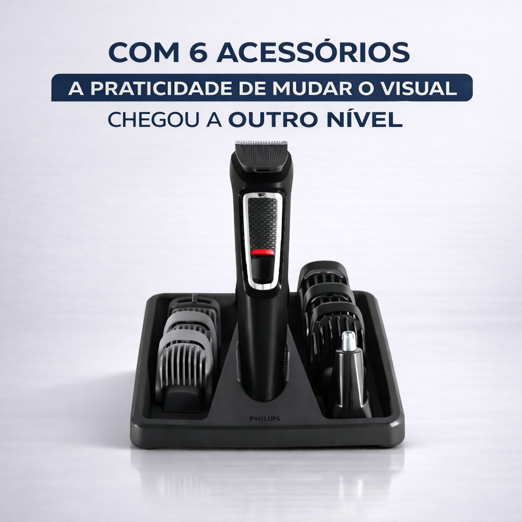 Philips Multigroom Barbeador 6 em 1 MG3711/15 Máquina Cabelo Barba Nariz Carregador Bivolt