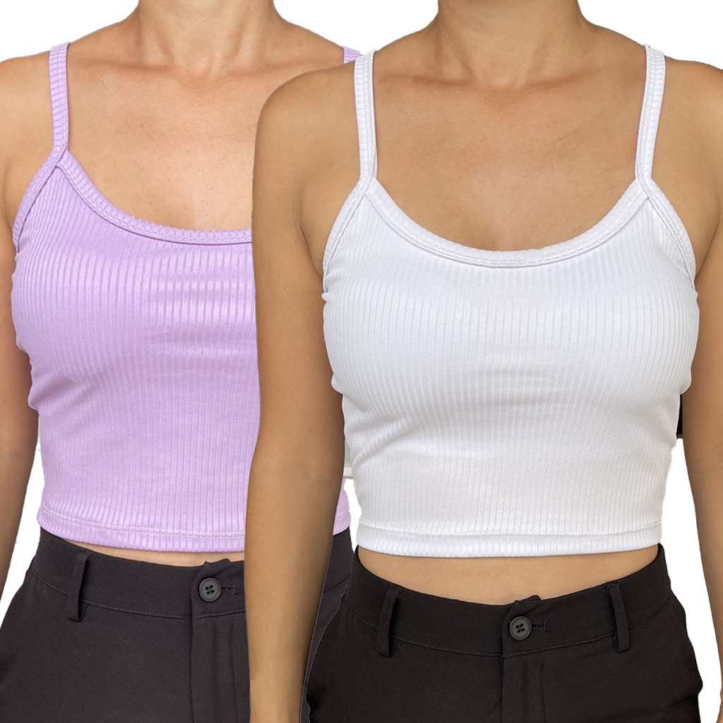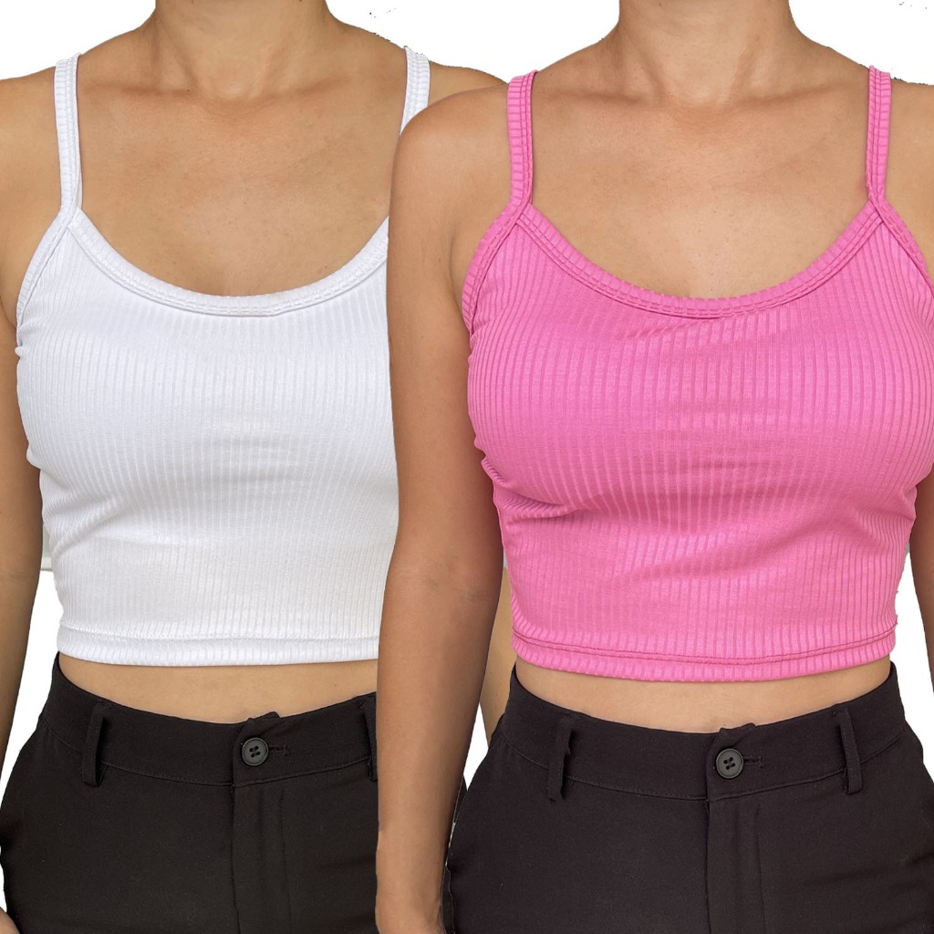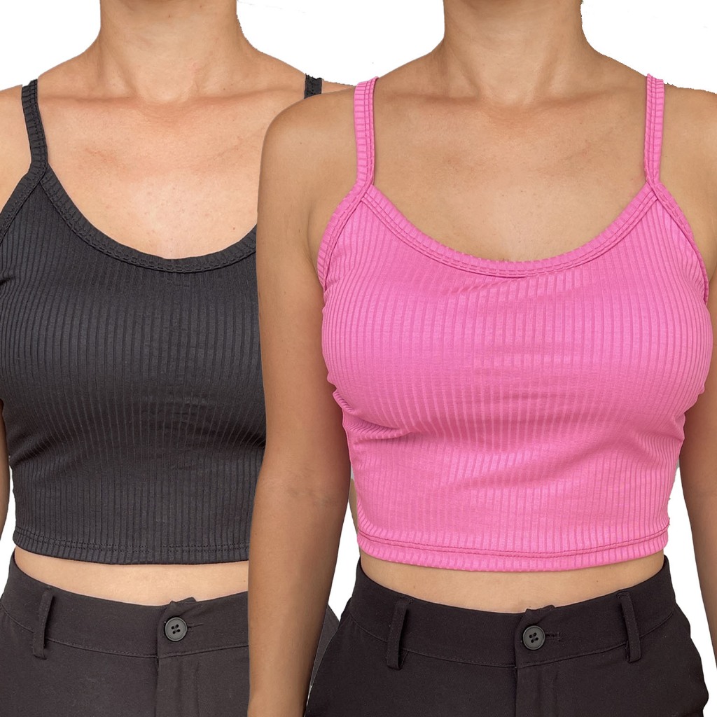 Kit 2 Cropped com Bojo Feminino Top Blusinha Blusa Ribana Alcinha Verao