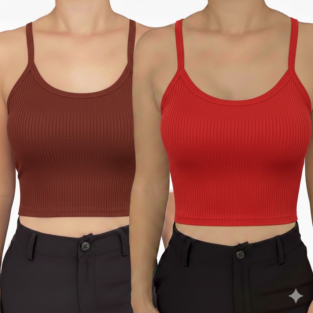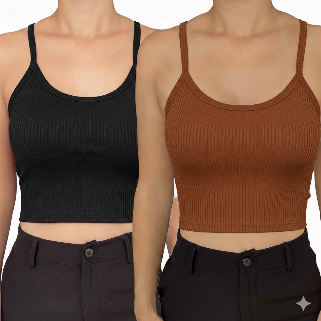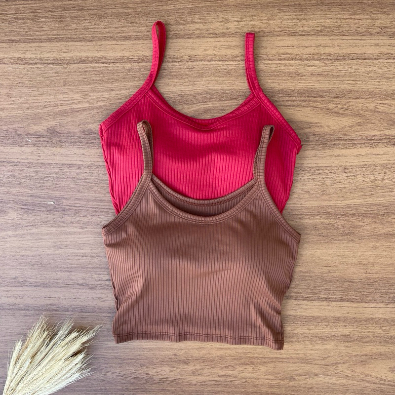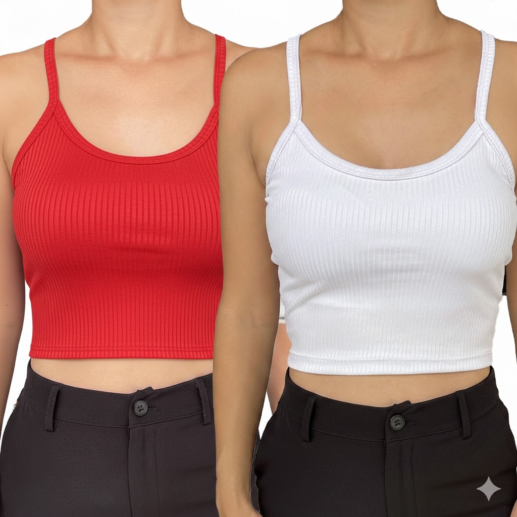 Kit 2 Cropped com Bojo Feminino Top Blusinha Blusa Ribana Alcinha Verao
