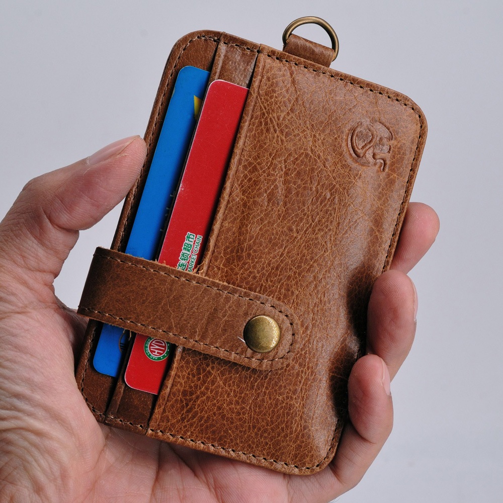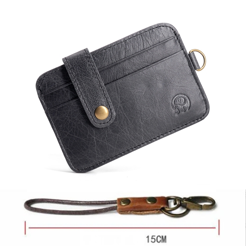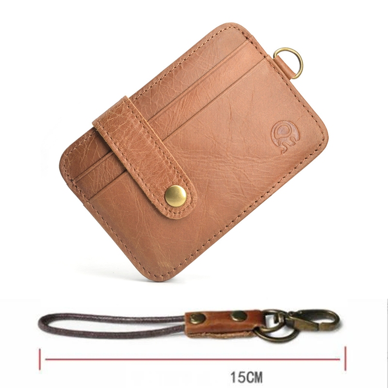 Novo Vintage Masculino Carteira De Couro Genuíno Fino Titular Do Cartão De Crédito Portátil Mini Bolsa Transparente Bols