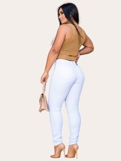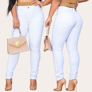 Calça Jeans Branca Cintura Alta Modelagem Levanta Bumbum Com Lycra Elastano