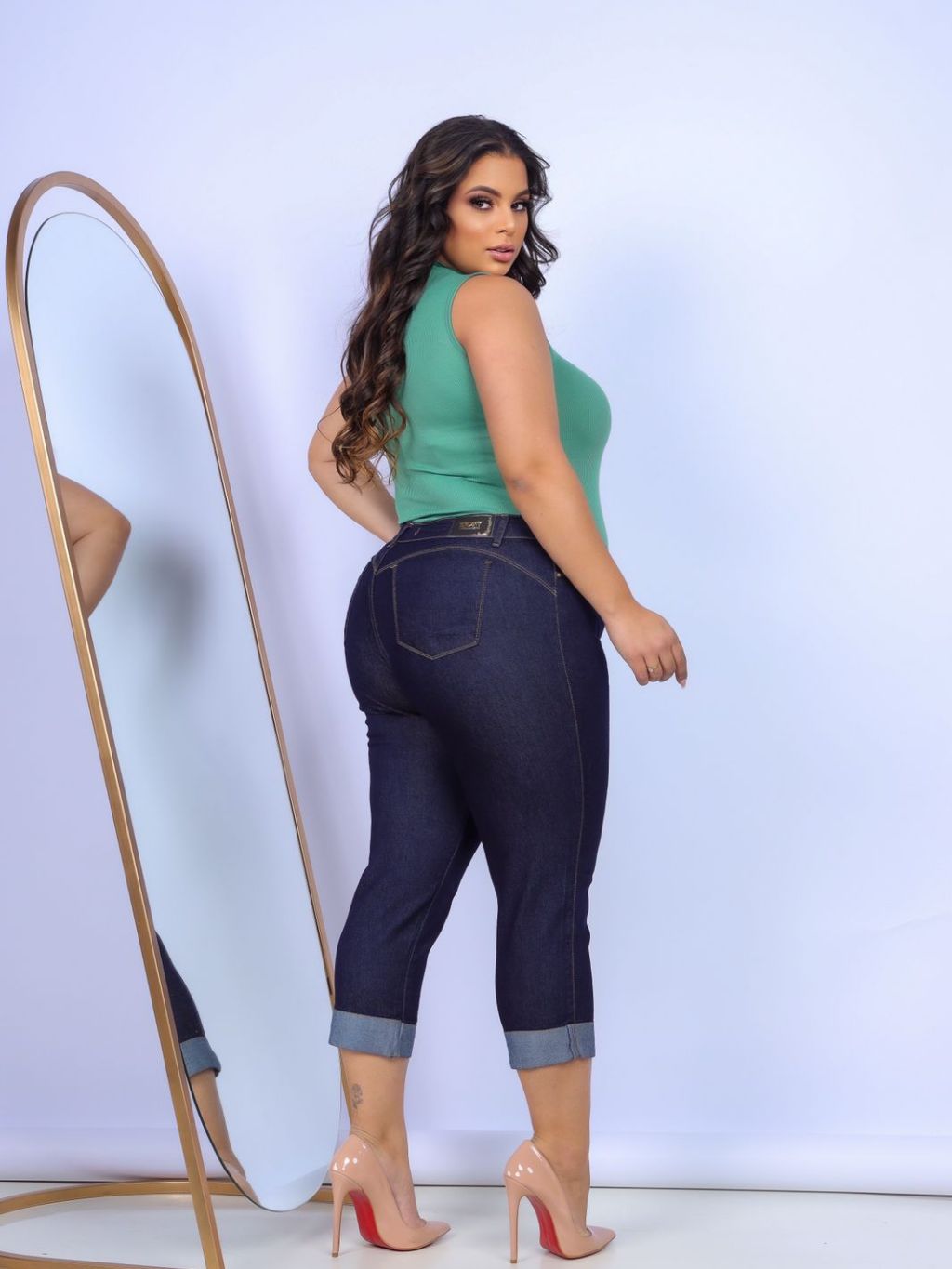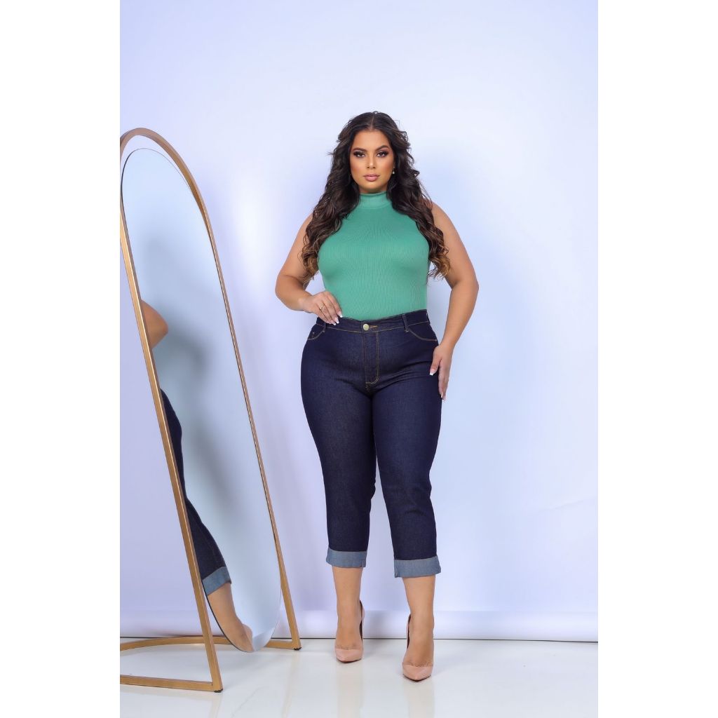 Calça Jeans Feminina Plus Size Capri Com ELastano Modelagem Empina Bumbum