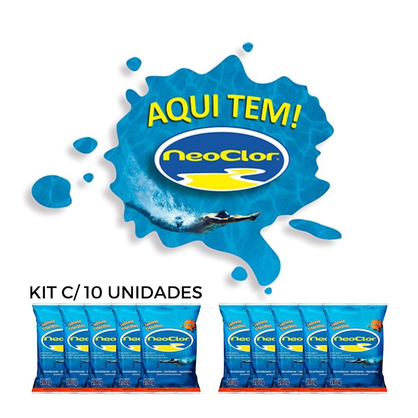 Kit 10 Pastilhas de Cloro 200g Neoclor Triaction | Clarificante Piscina Alta Performance