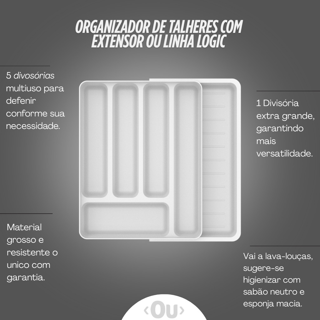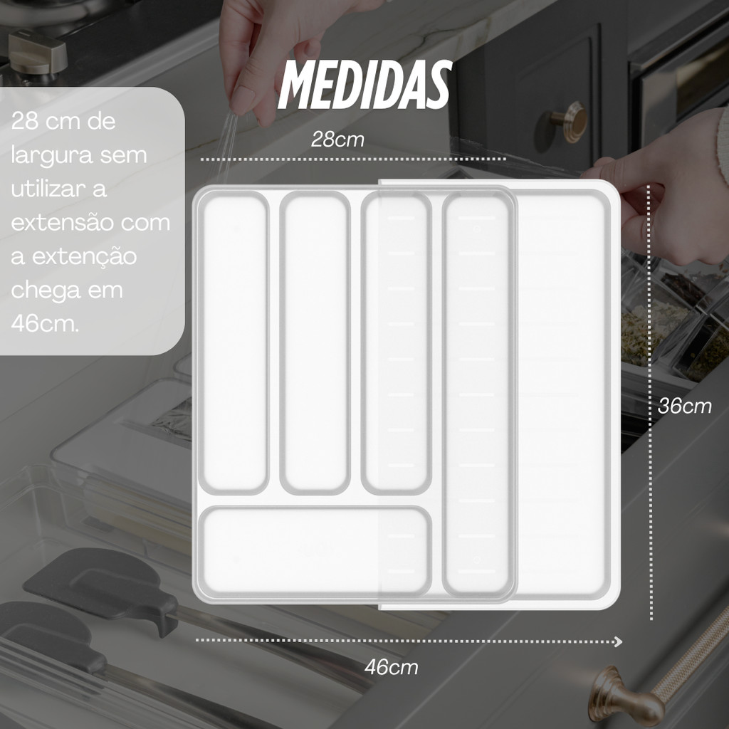 Organizador de Gaveta com Extensor Porta Talheres Separador de Talher Gaveteiro Cozinha Ou Logic 36cm x 28cm