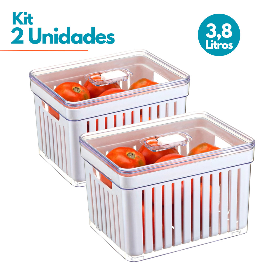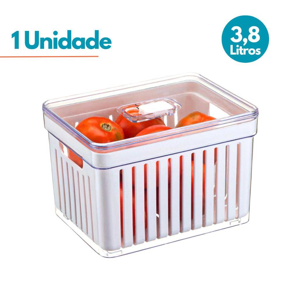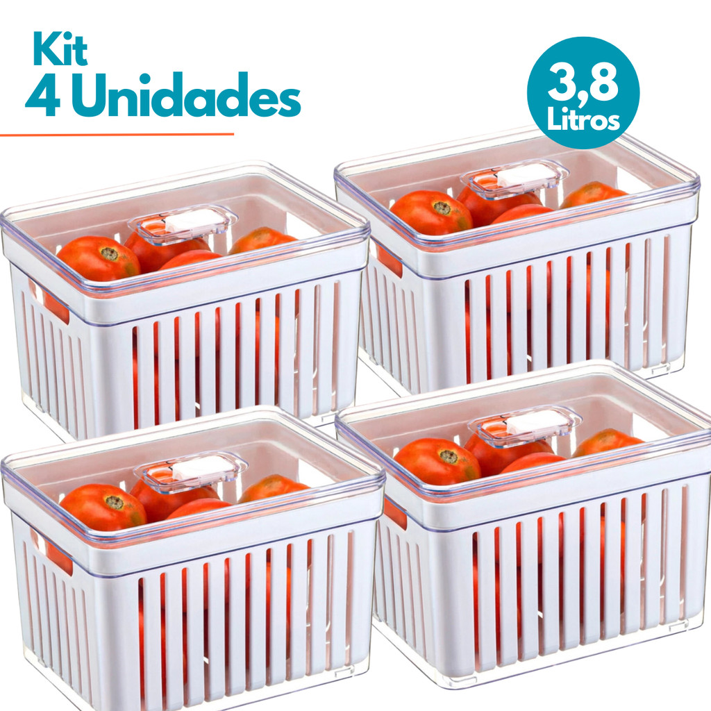 Kit 1- 4 Organizador de Geladeira 3,8 Litros Cesto Com Tampa Alimentos Verduras Potes de Salada Premium