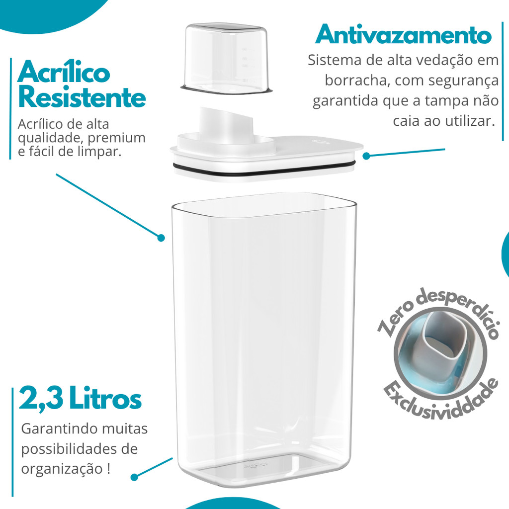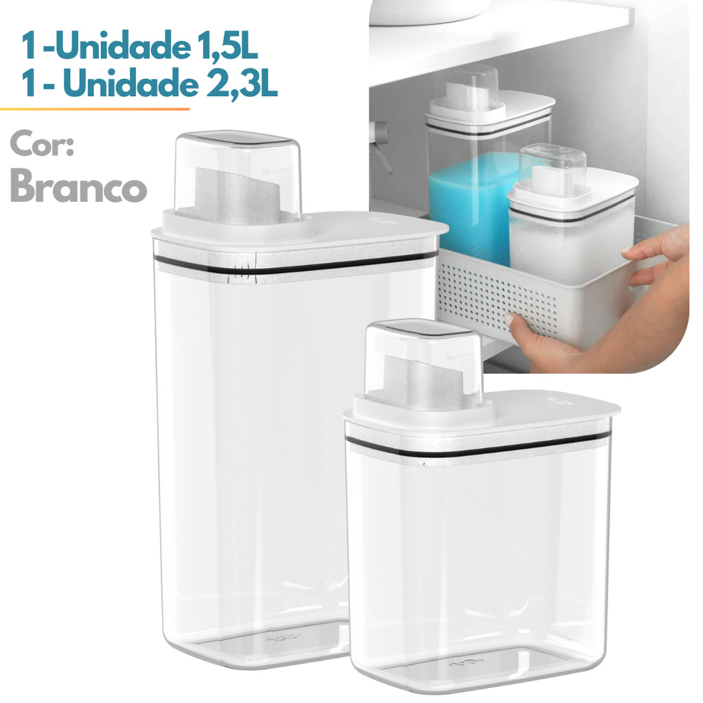 Kit Dispenser Organizador Lavanderia 2,3 e 1,5 Litros Acrílico amaciante sabão em pó Lavanderia