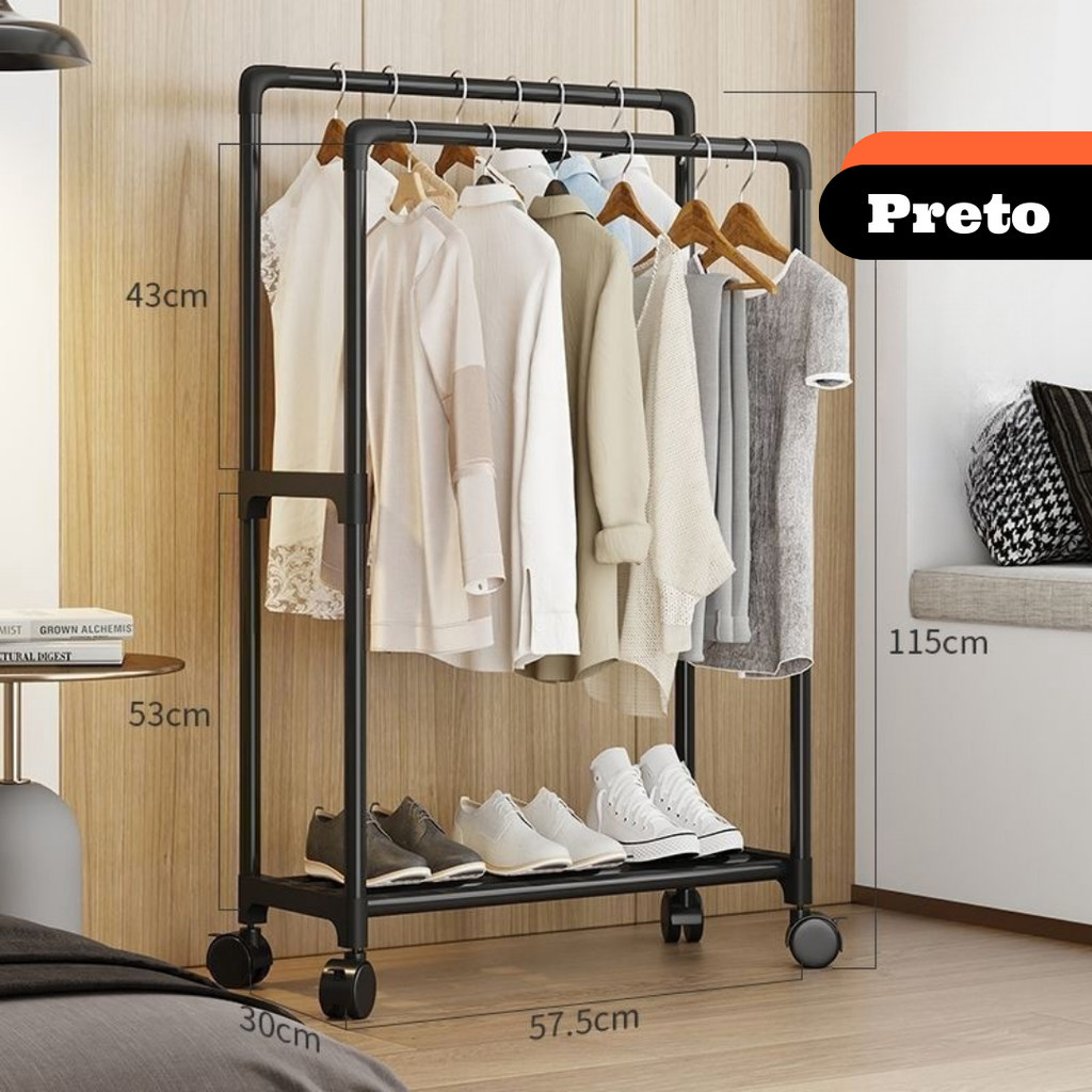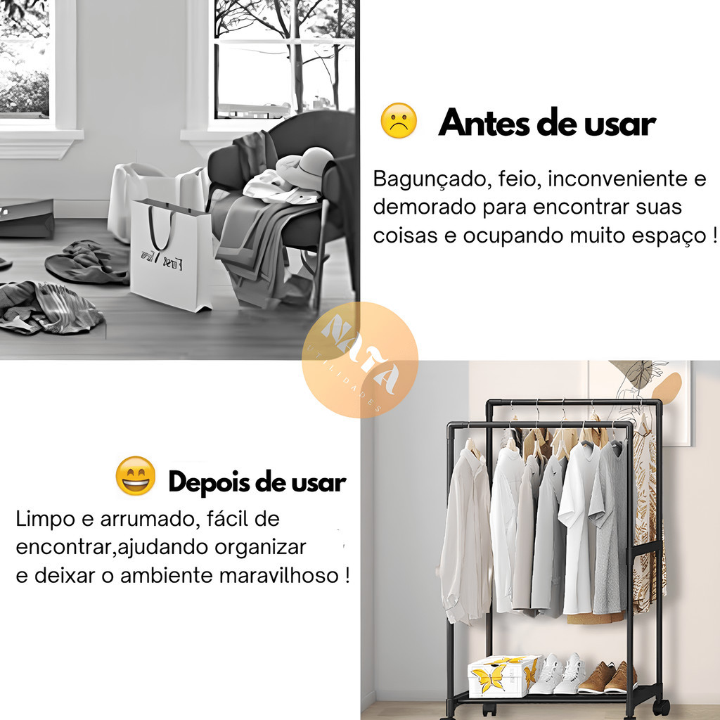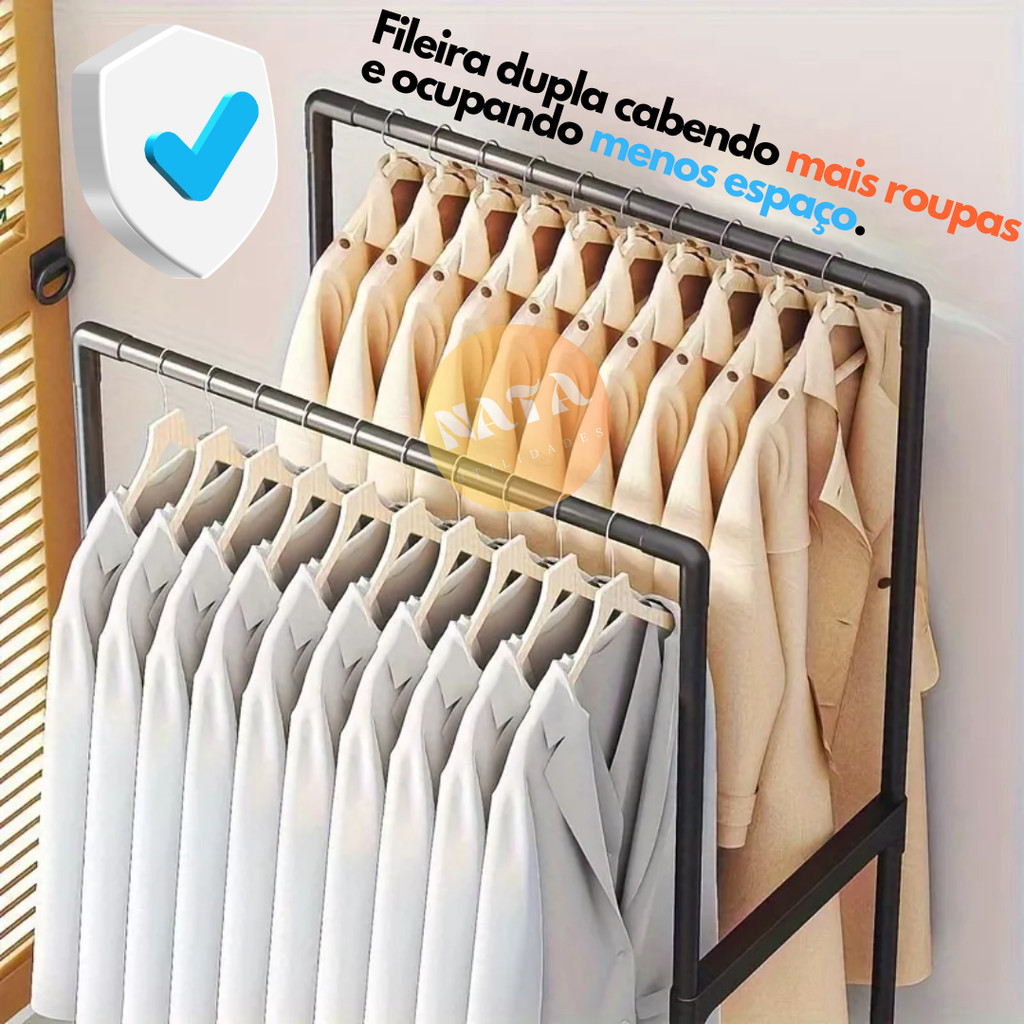 Estante Cabideiro Duplo Arara Guarda Roupas Sapateira Rack Organizadora