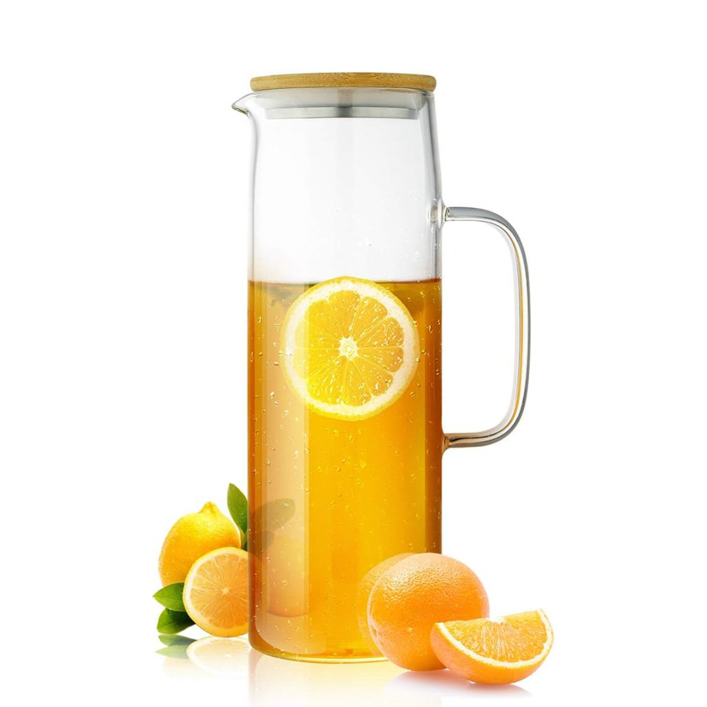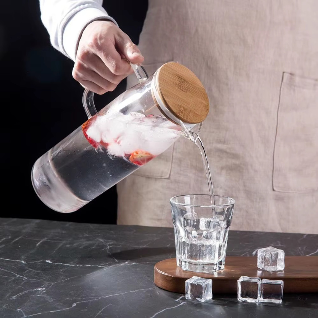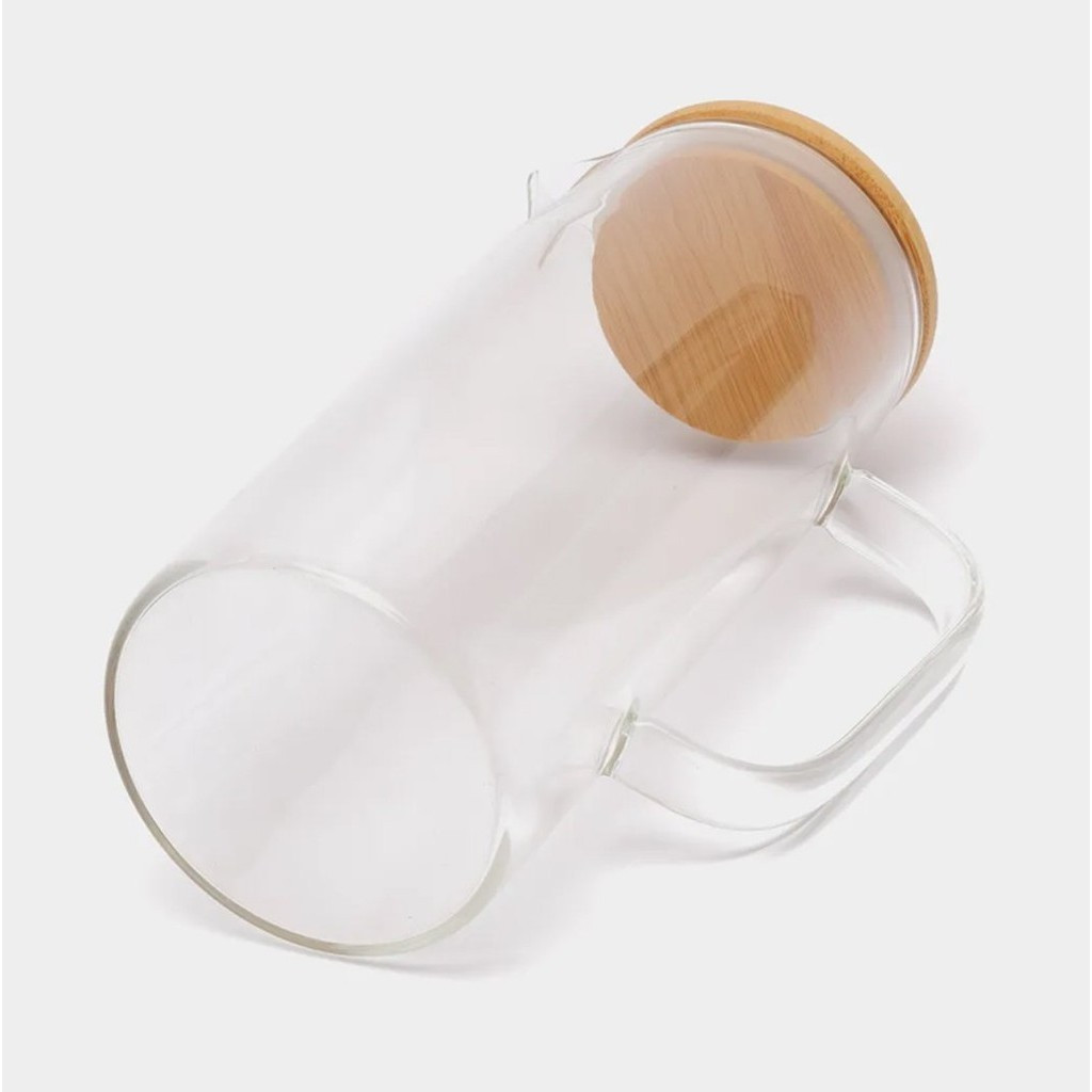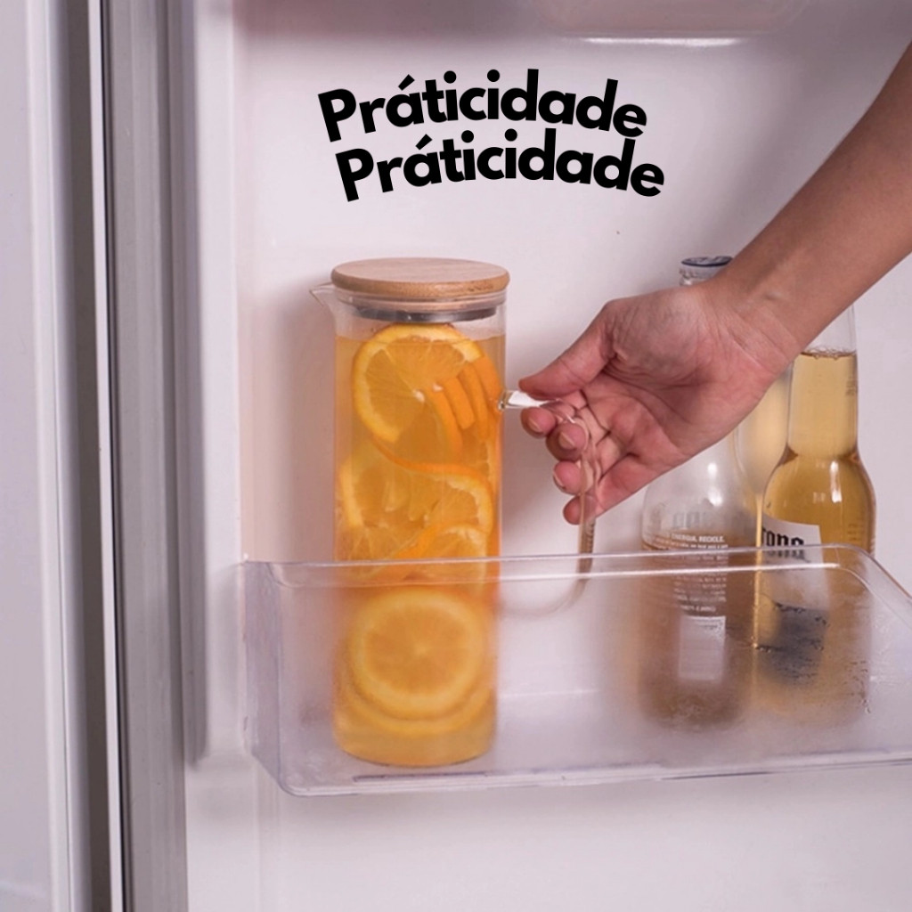 Jarra de Vidro Borossilicato com Tampa de Bambu 1L Garrafa de Suco Chá Tampa Hermética Geladeira