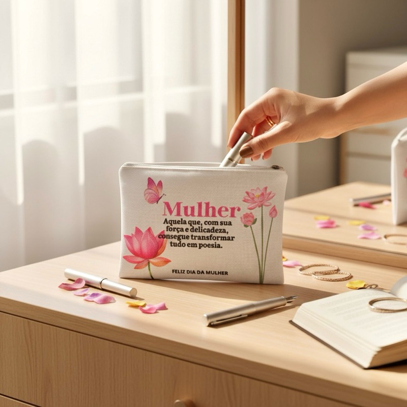KIT 10 UNIDS Necessaire bolsinha Dia da Mulher Personalizada Floral Delicada Lembrancinha Feminina Presente Especial