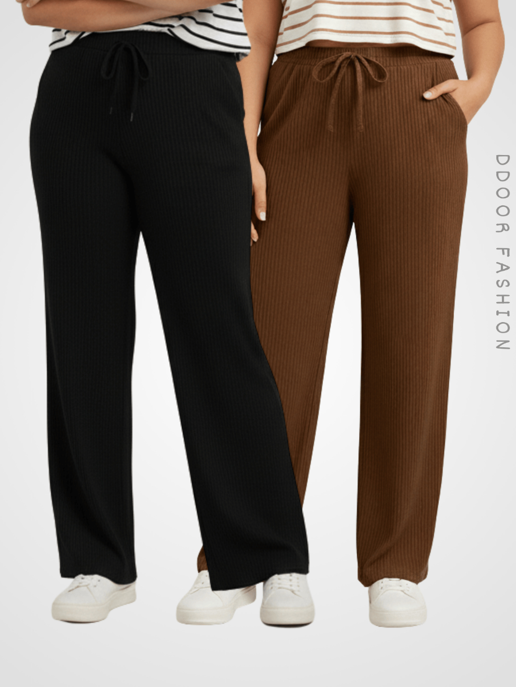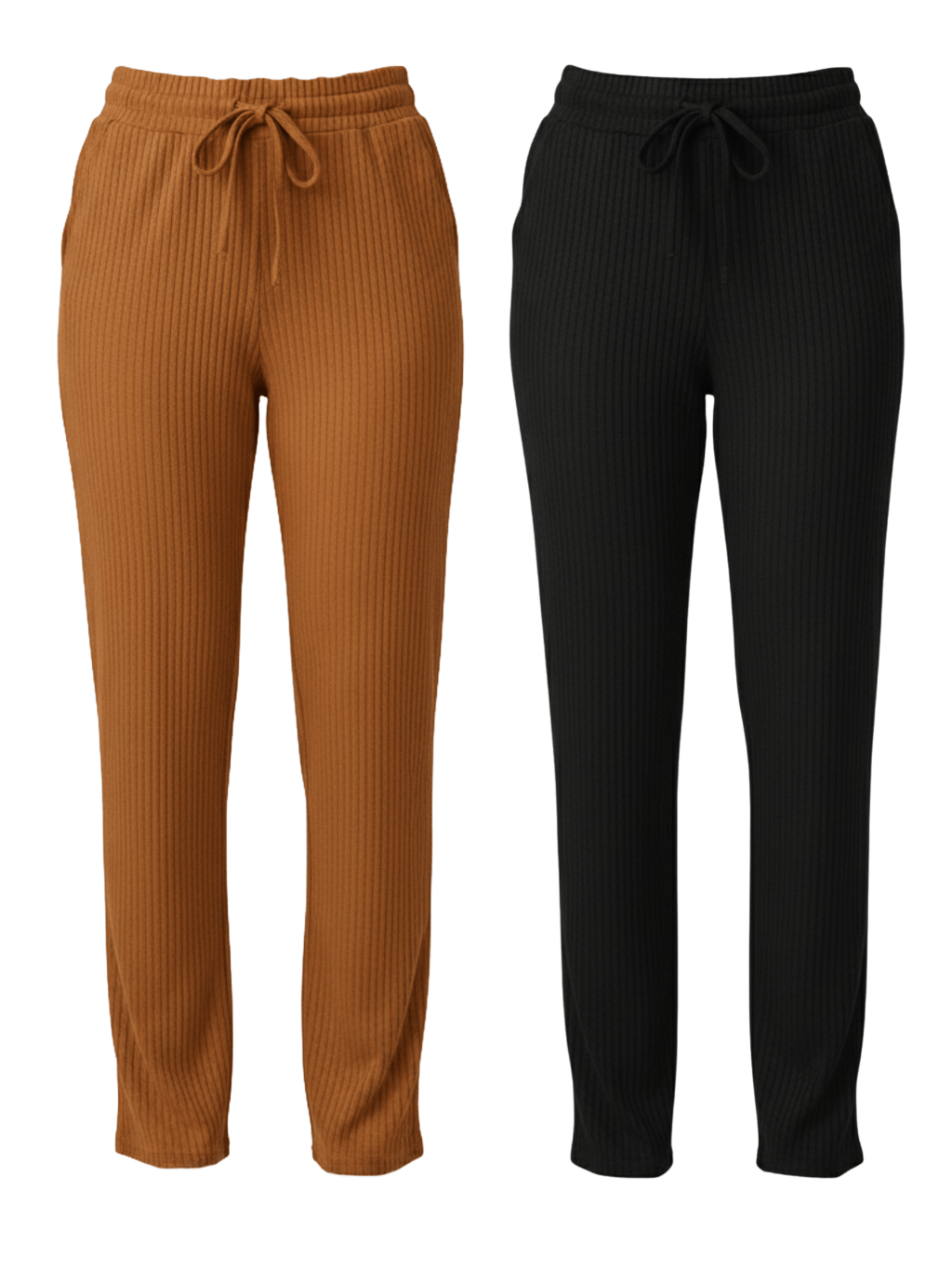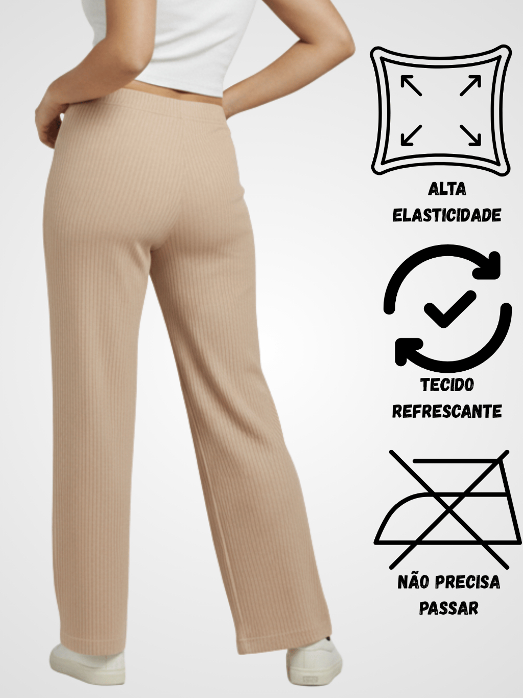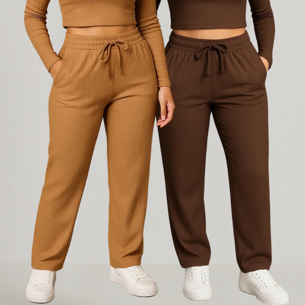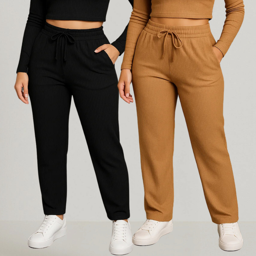 Kit 2 Calça Preta Pantalona Feminina Lisa Com Bolso Cintura Alta Tecido Canelado Confortável