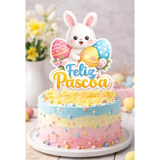 Topo de Bolo Páscoa Feliz Páscoa Coelhinho Fofo Decoração Festa Páscoa Infantil Topper Bolo Tema Páscoa Personalizado