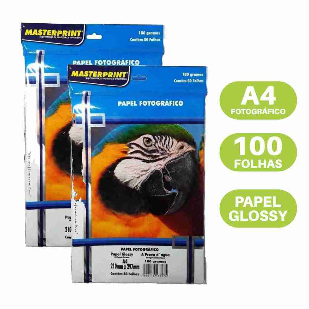 Papel Fotográfico 180g A4 Kit 200 folhas Glossy À Prova D'água MasterPrint
