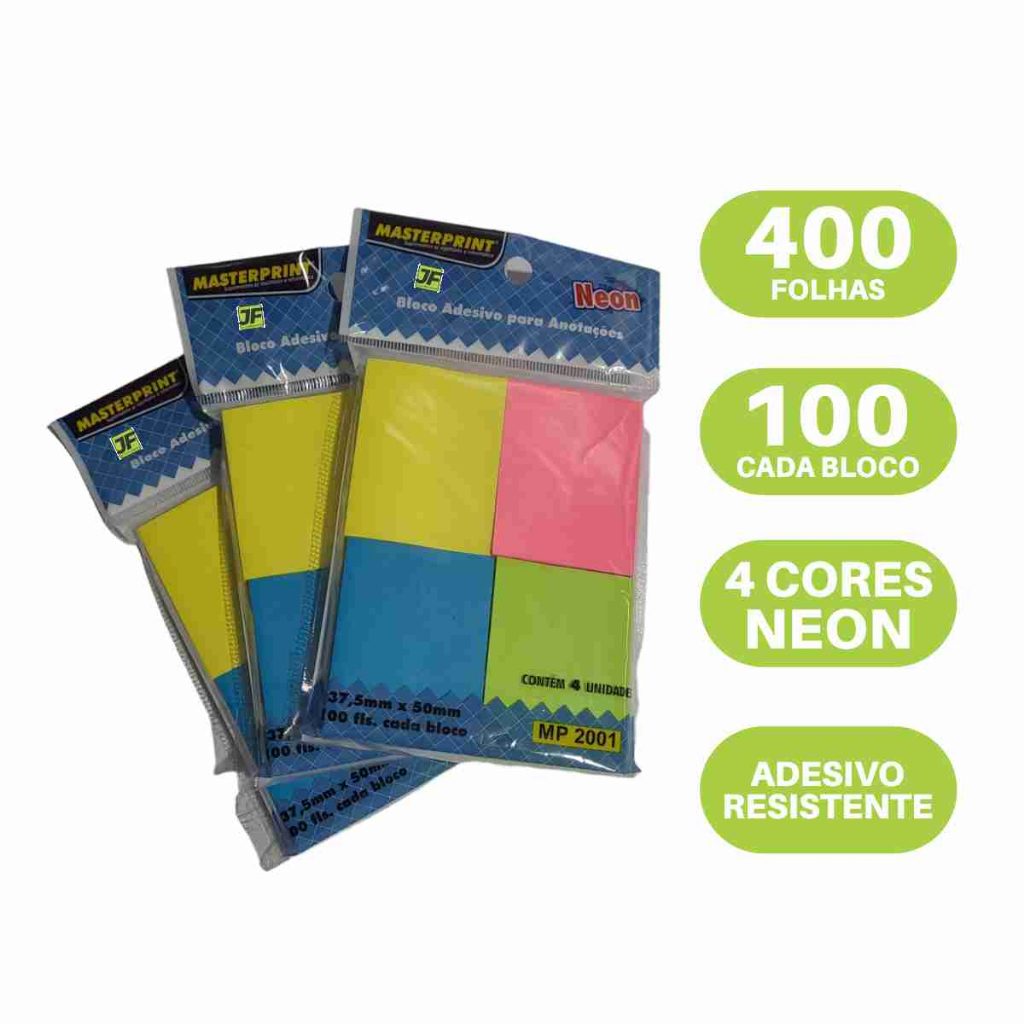 Bloco ADESIVO para Anotações Post It Cores Neon Vivas Auto Adesivo MasterPrint