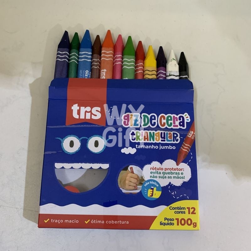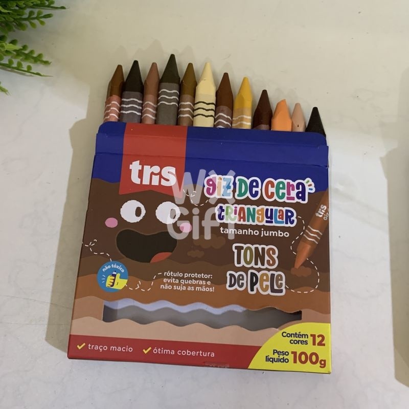 Giz de Cera Jumbo Triangular com 12 Cores Tons de Pele e Comum - Tris