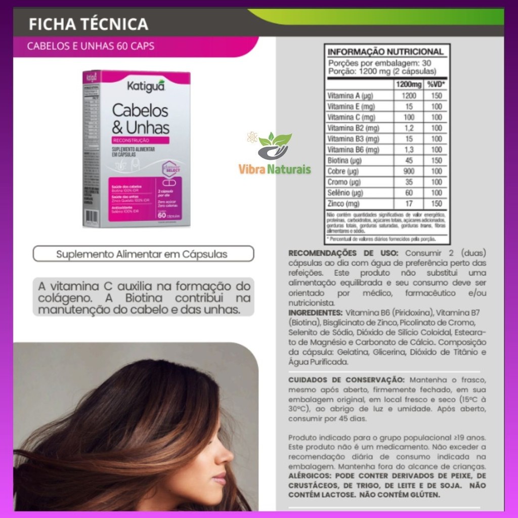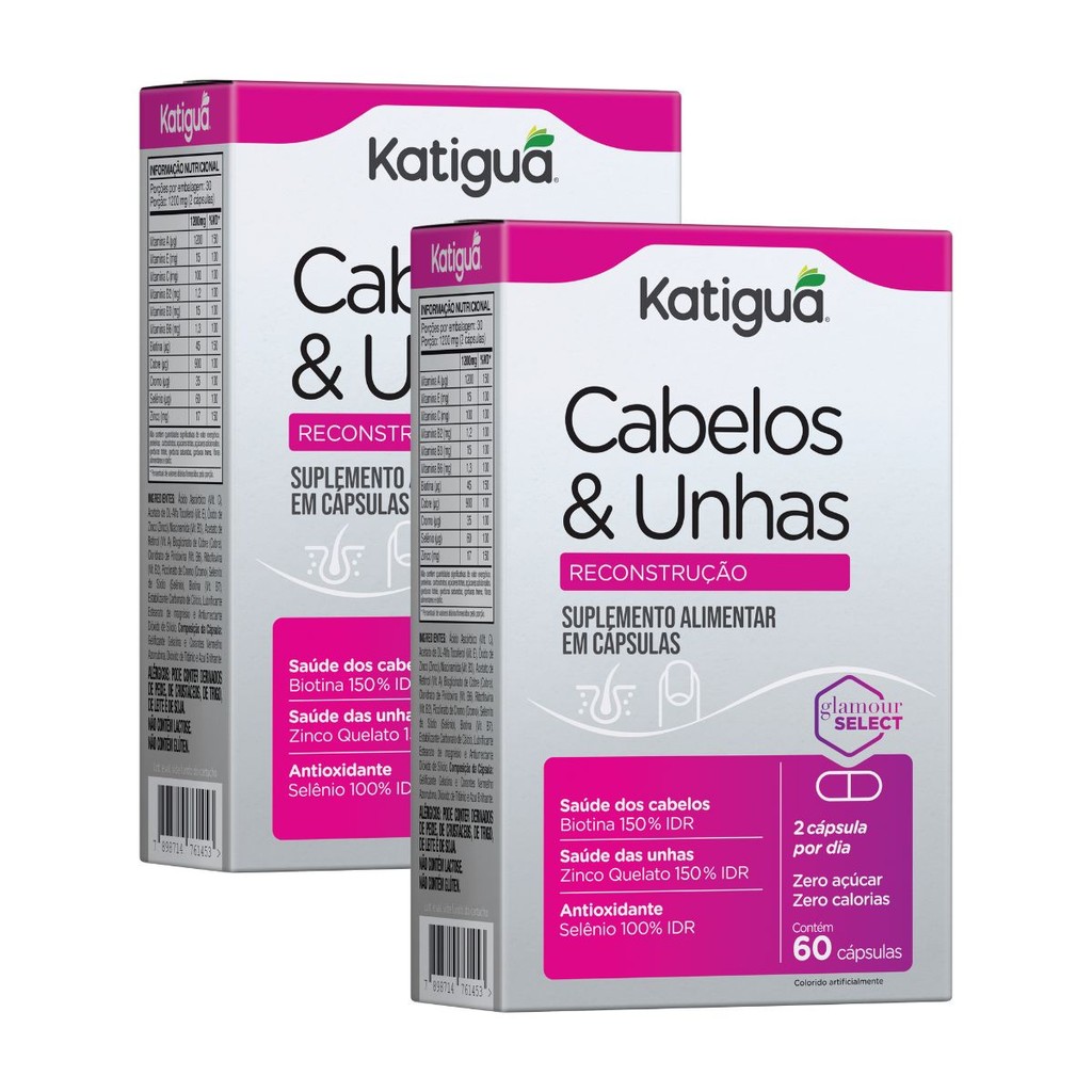 Kit 1, 2 ou 3 Caixas Cabelos e Unhas Biotina + Zinco + Selênio + Cromo 60 Cápsulas