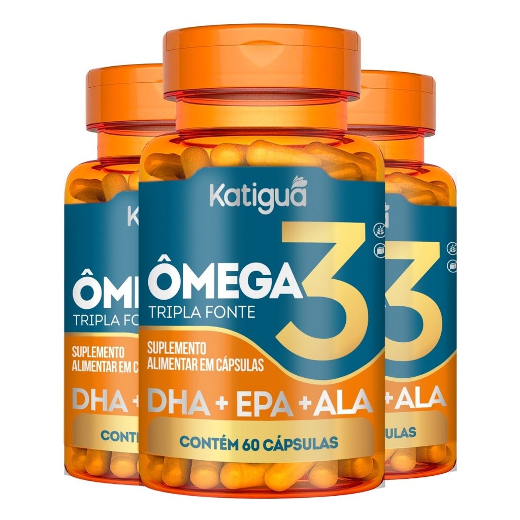 Kit com 1, 2 ou 3 Potes Omega 3 Tripla Fonte 1000mg Ômega 3 Original Natural 100% Puro 60Cápsulas