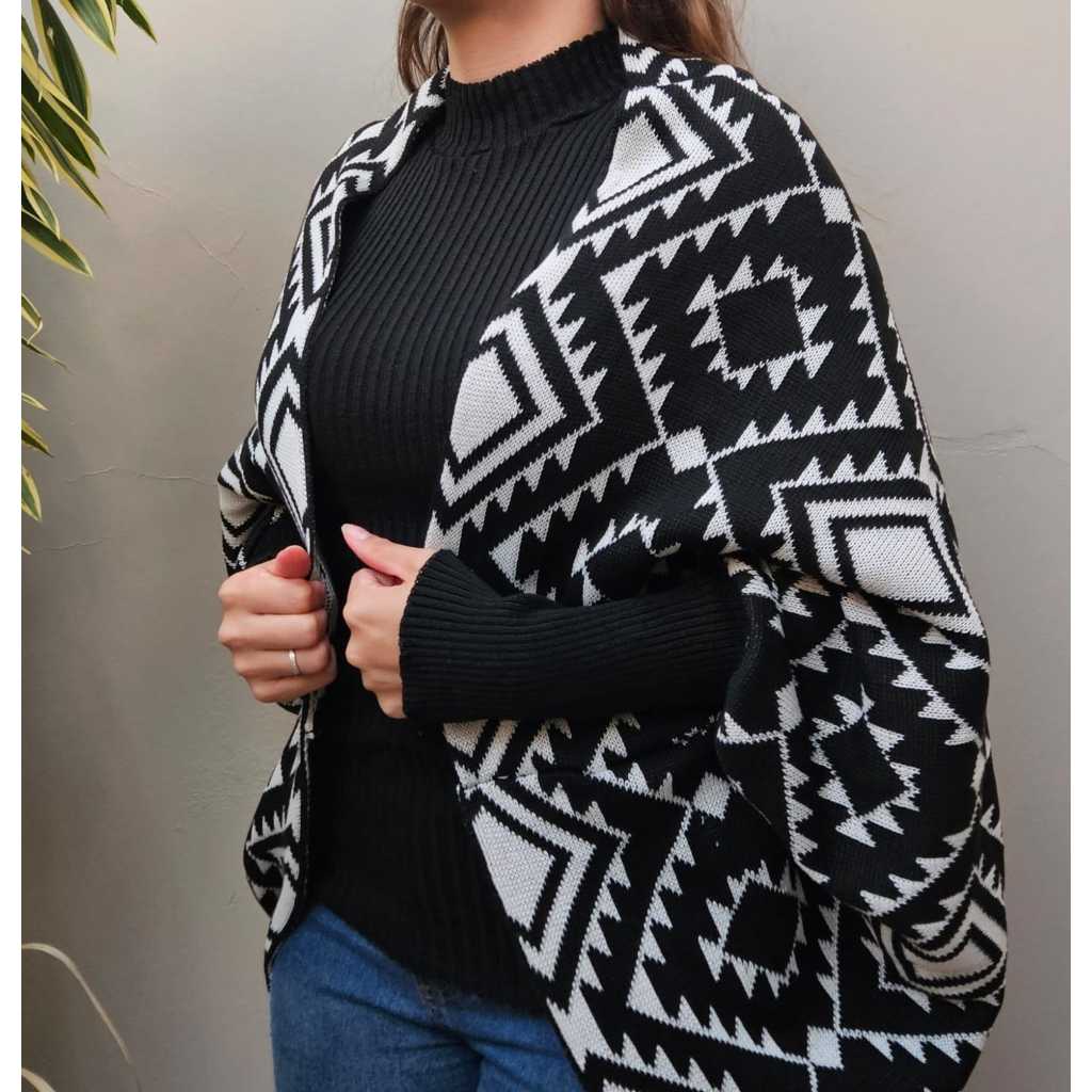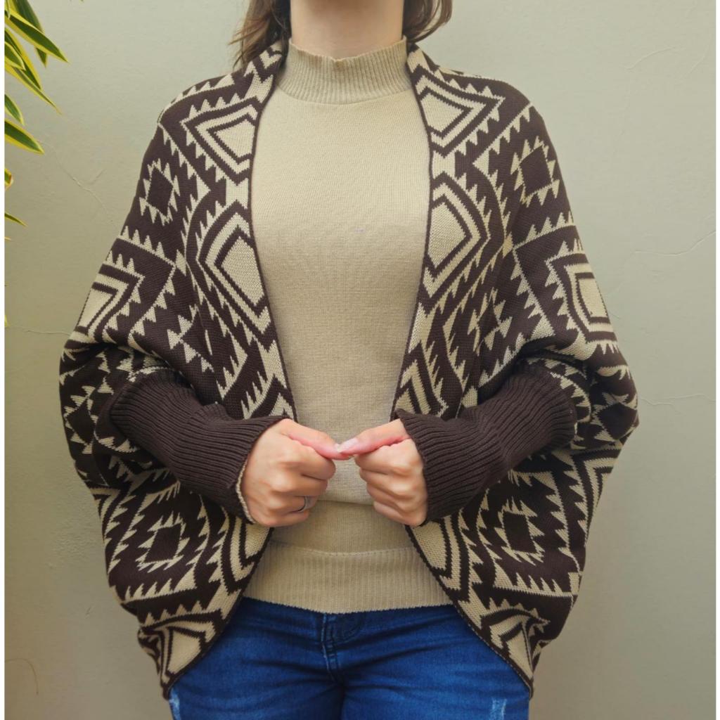 Poncho Cardigan Feminino De Tricô Tricot Capa Blogueirinha Sobreposição Outono/Inverno 2026
