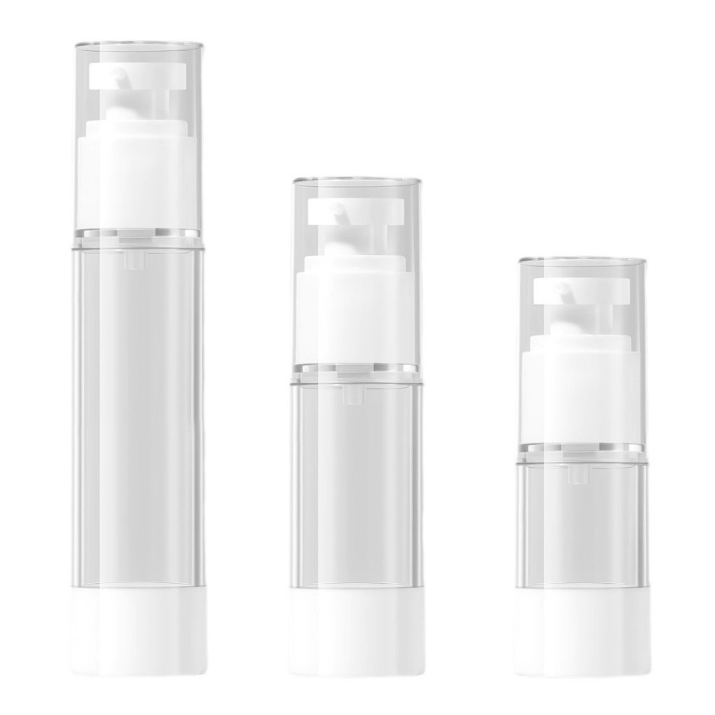 Kit 3 Frascos transparente Airless C/ Valvula Pump 15ml/30ml/50ml Recarregáveis para Diaria