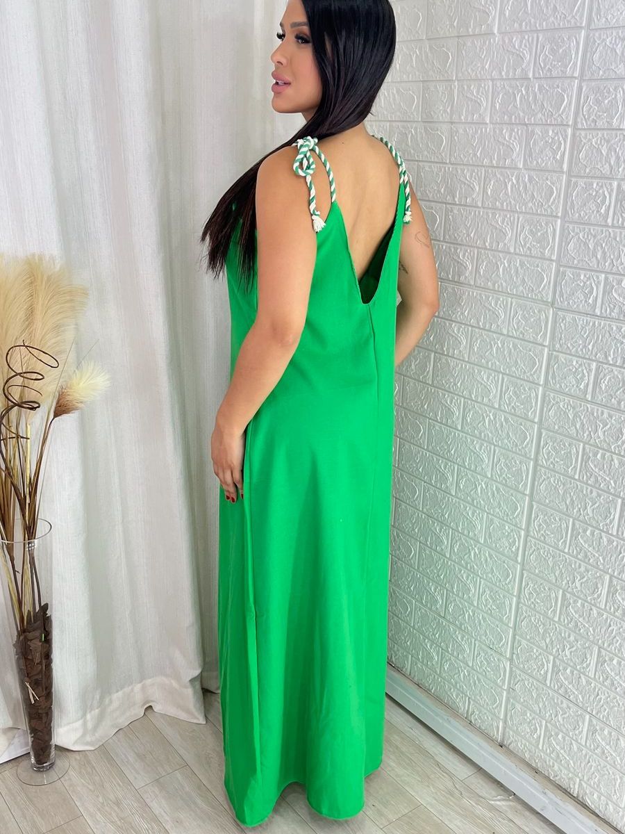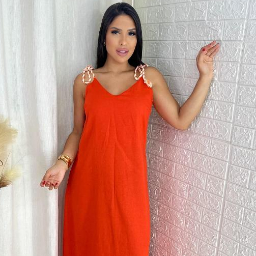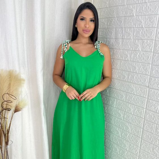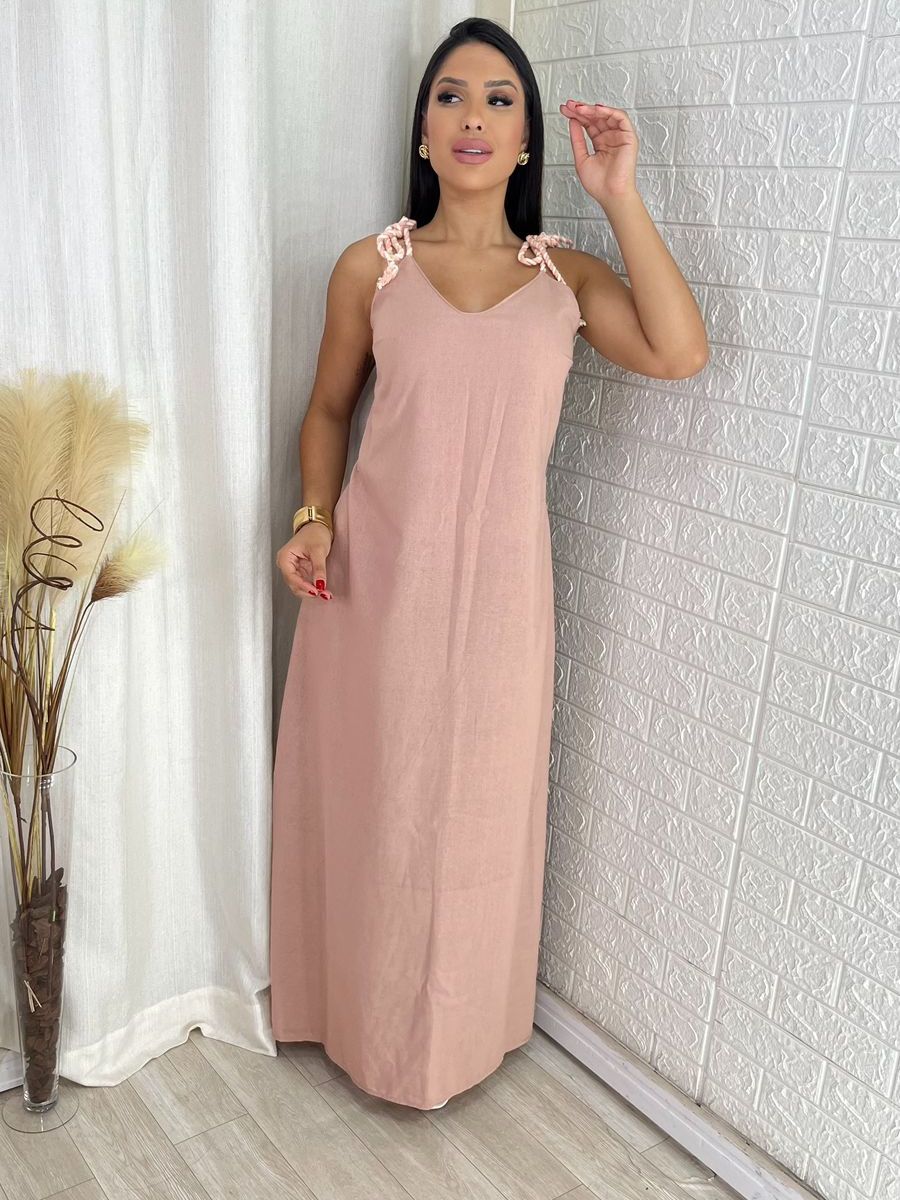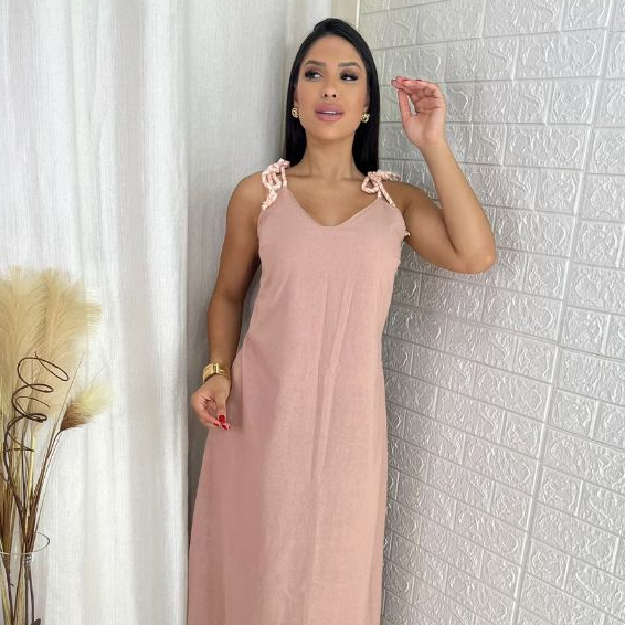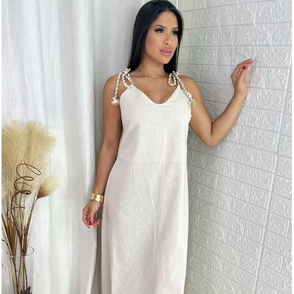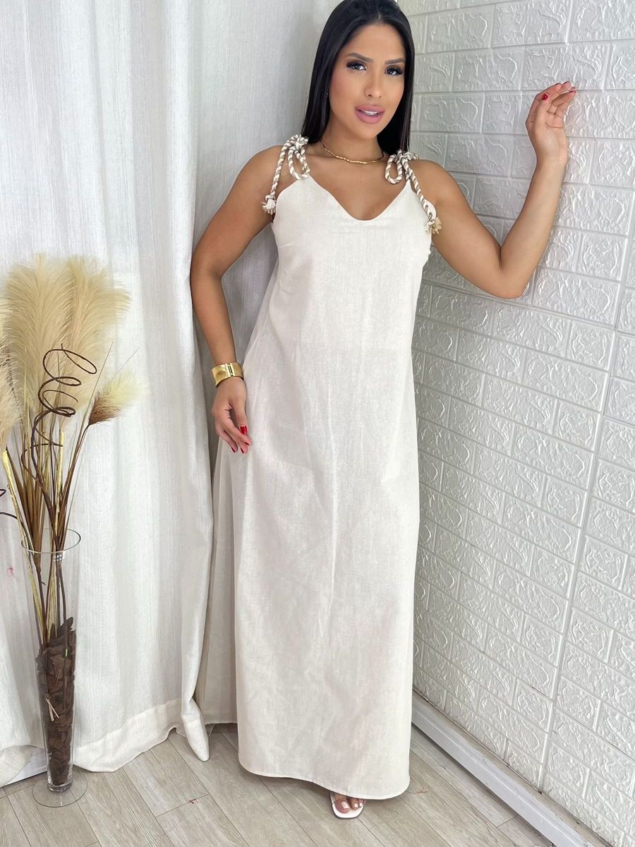 Vestido Feminino Longo Linho de Alça Elegante Soltinho Confortável