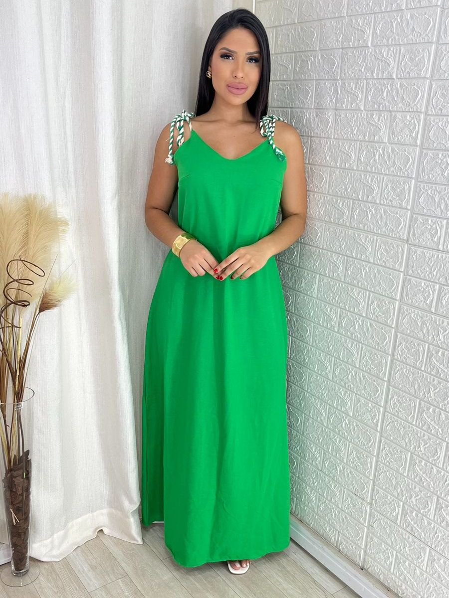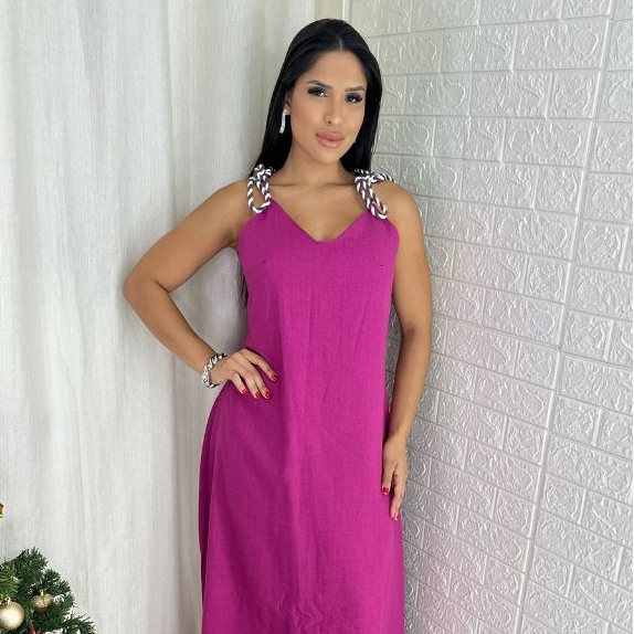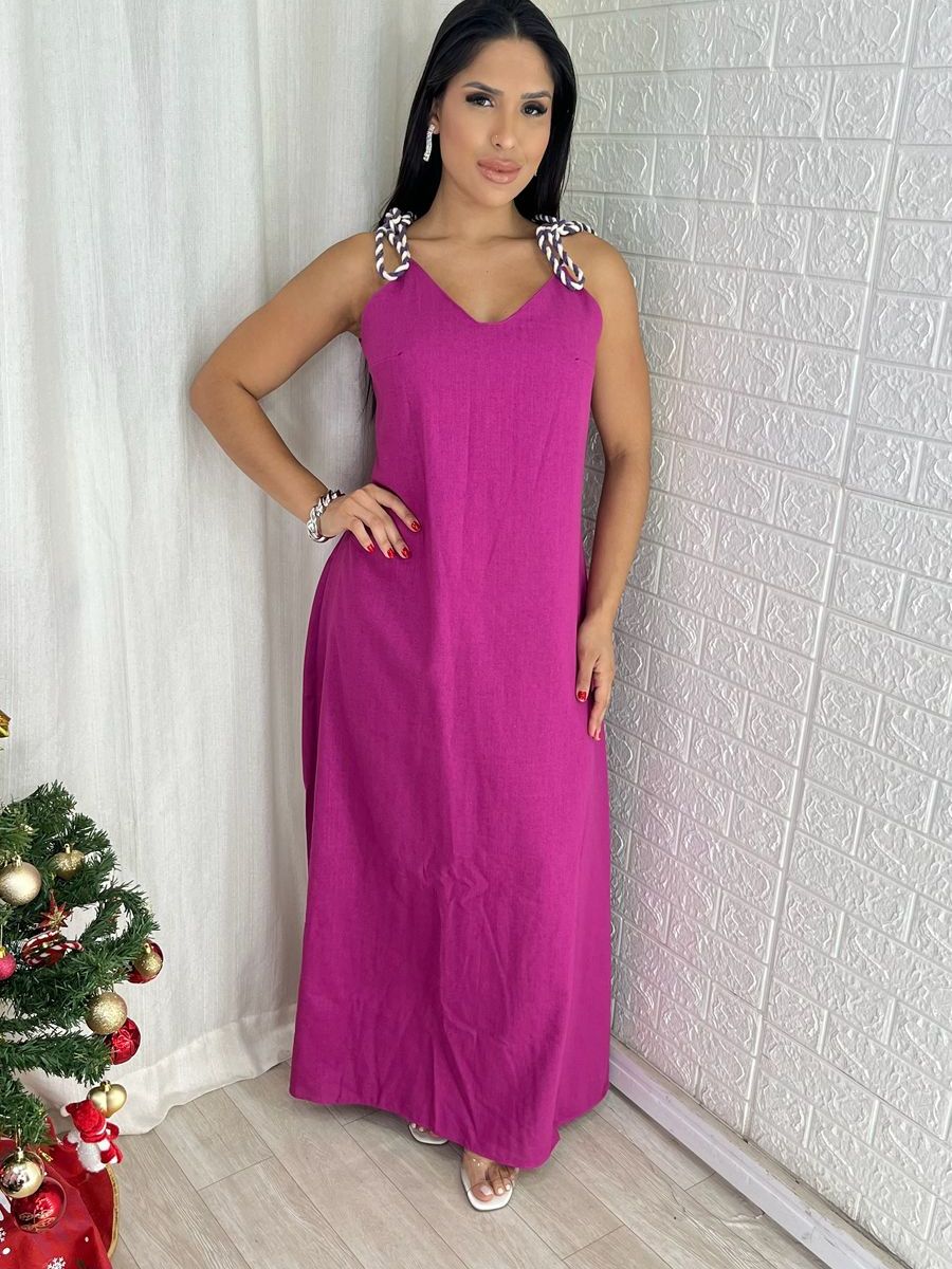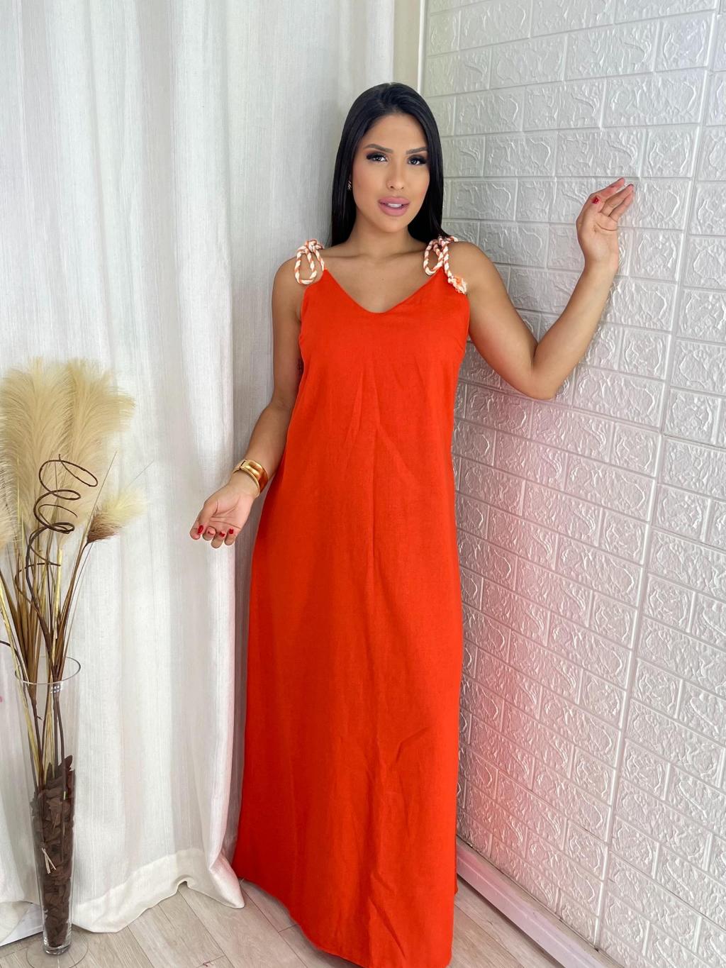 Vestido Feminino Longo Linho de Alça Elegante Soltinho Confortável
