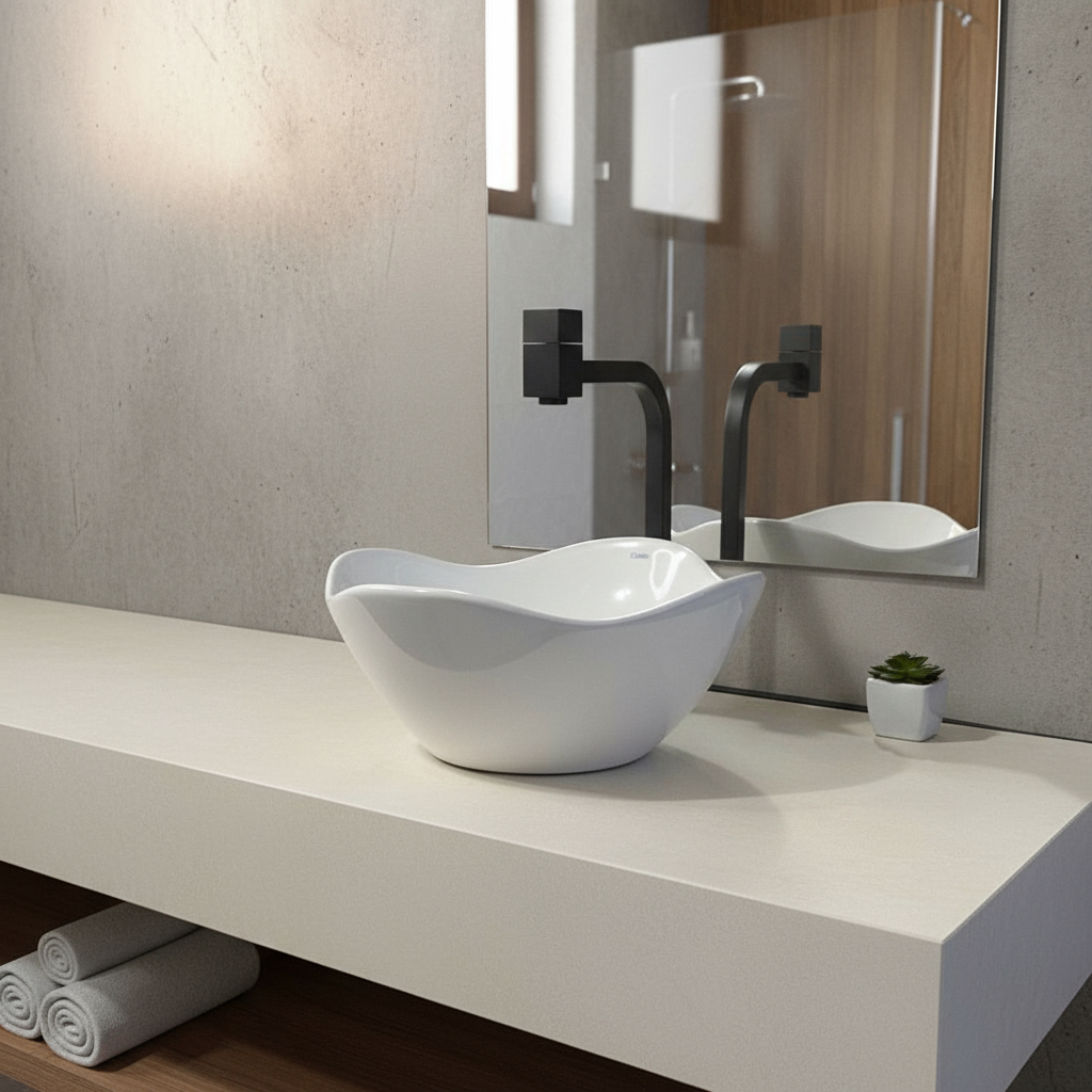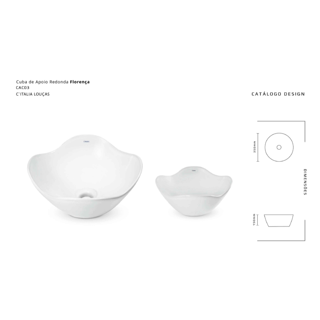 CUBA PARA BANHEIRO SOBREPOR DE LOUÇA REDONDA 35X15CM FLORENÇA COM TAMPA DE VÁLVULA - LAVABO