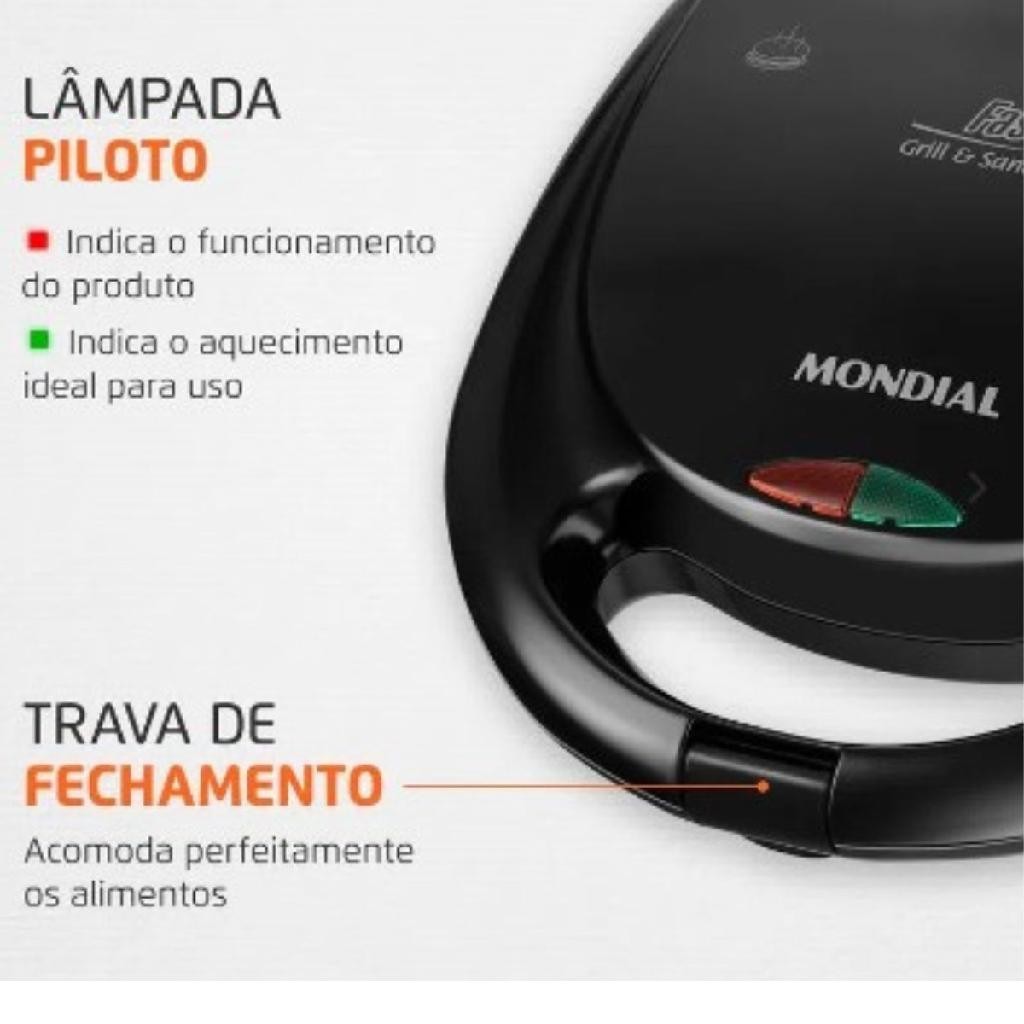 Sanduicheira Grill Elétrica Mondial S-12 Fast Grill Sandwich Antiaderente 750W Lâmpada Preta 110v