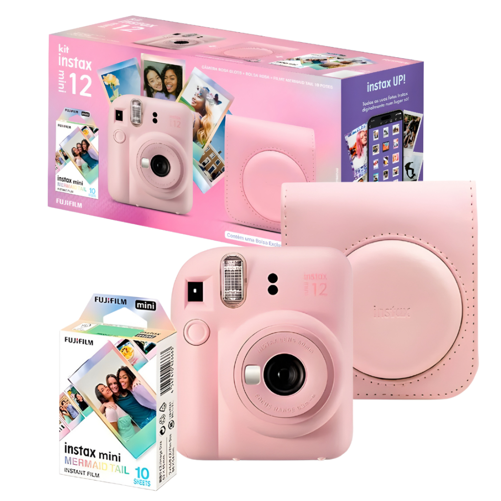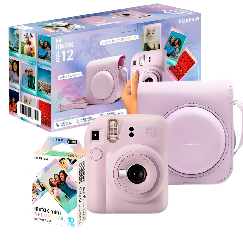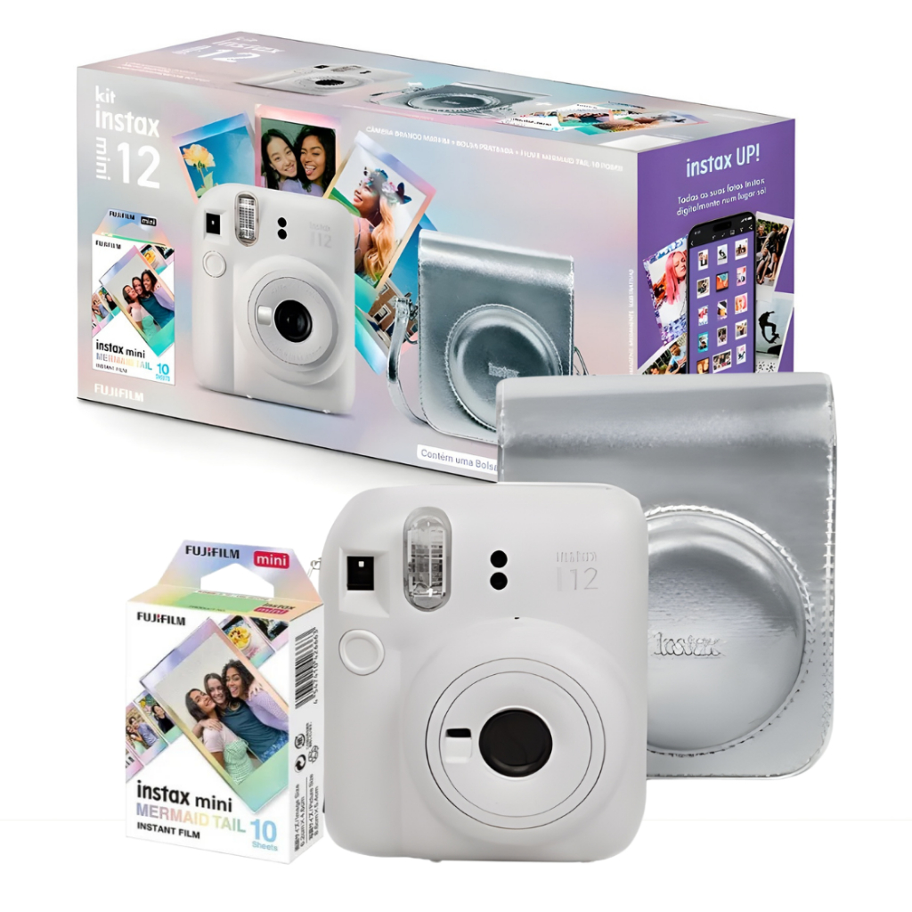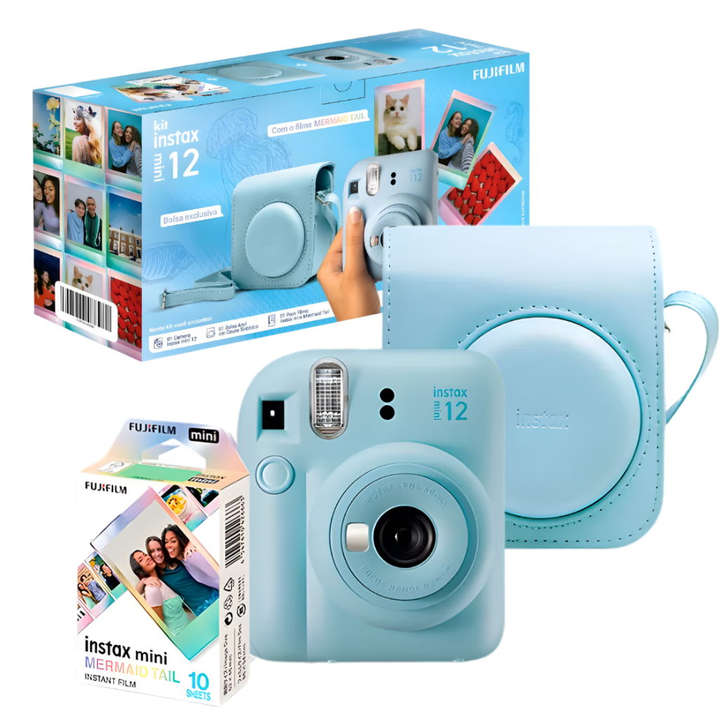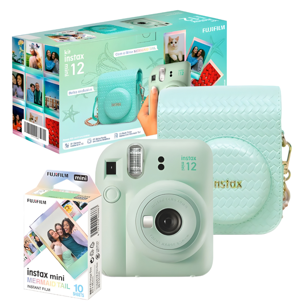 KIT Câmera + Bolsa Instax Mini 12 Fujifilm Instantânea Completo 10 Filmes Mermaid Tail