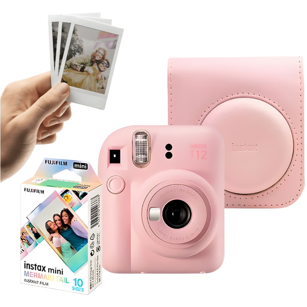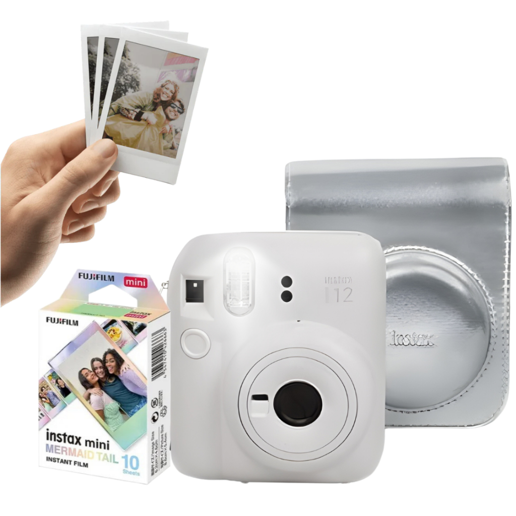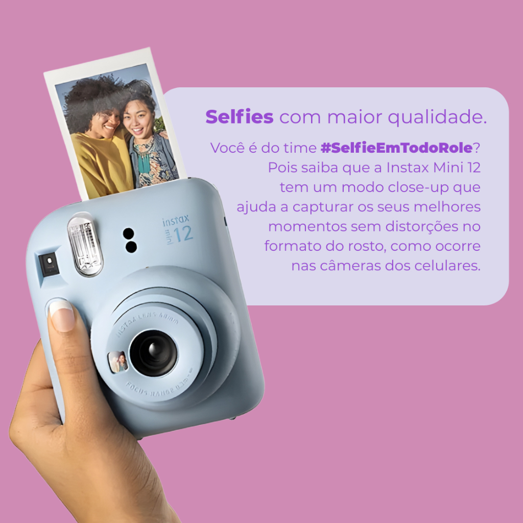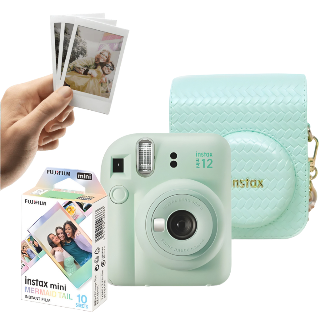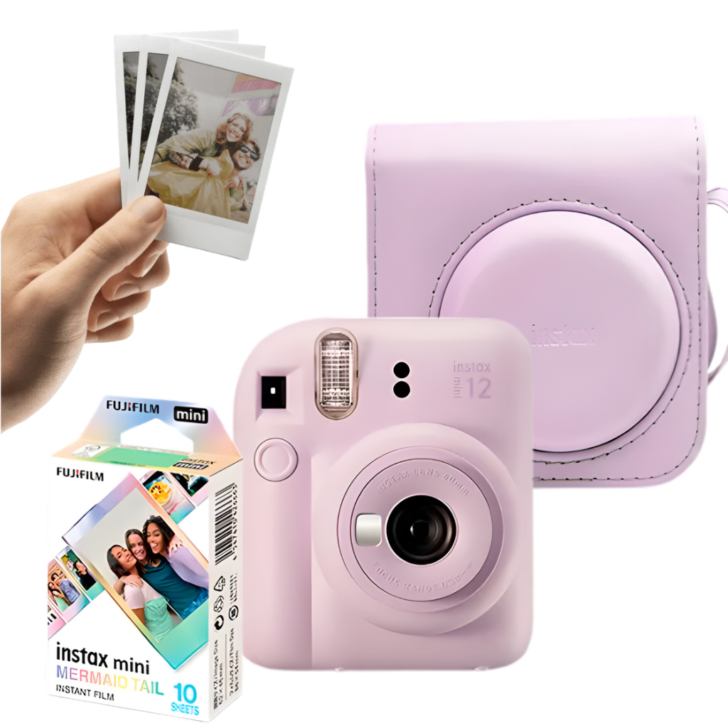 KIT Câmera + Bolsa Instax Mini 12 Fujifilm Instantânea Completo 10 Filmes Mermaid Tail