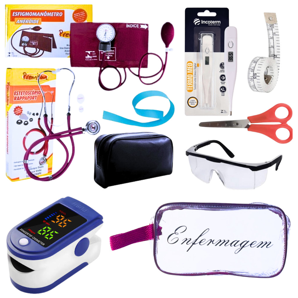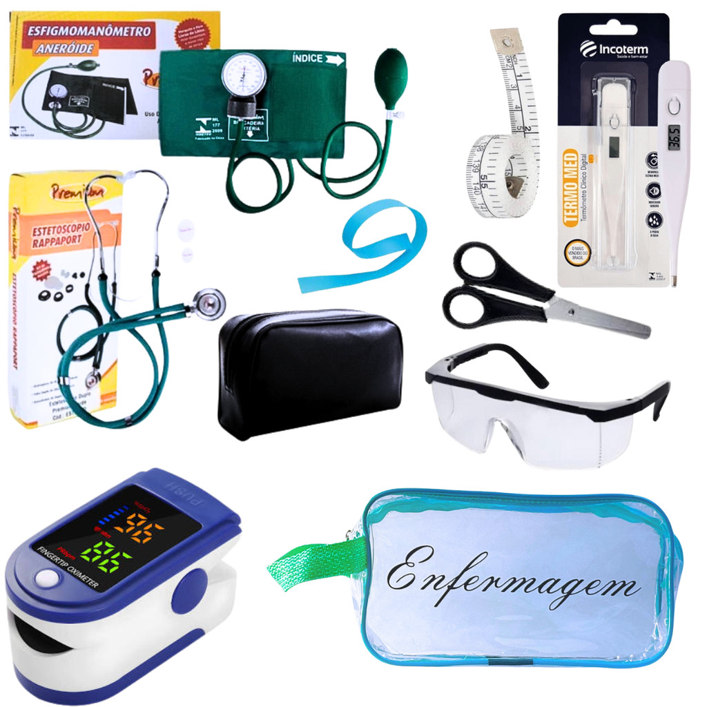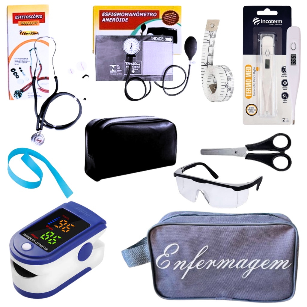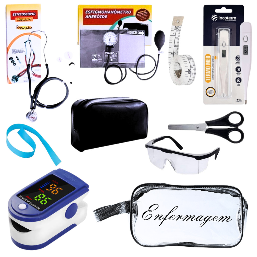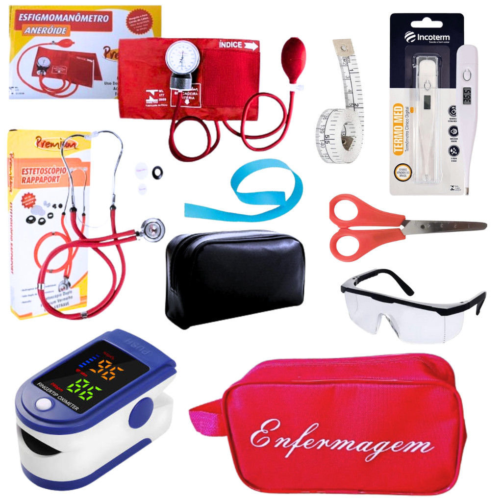 Kit Enfermagem Aparelho de Pressão + Estetoscópio Completo + Oximetro + Nécessaire
