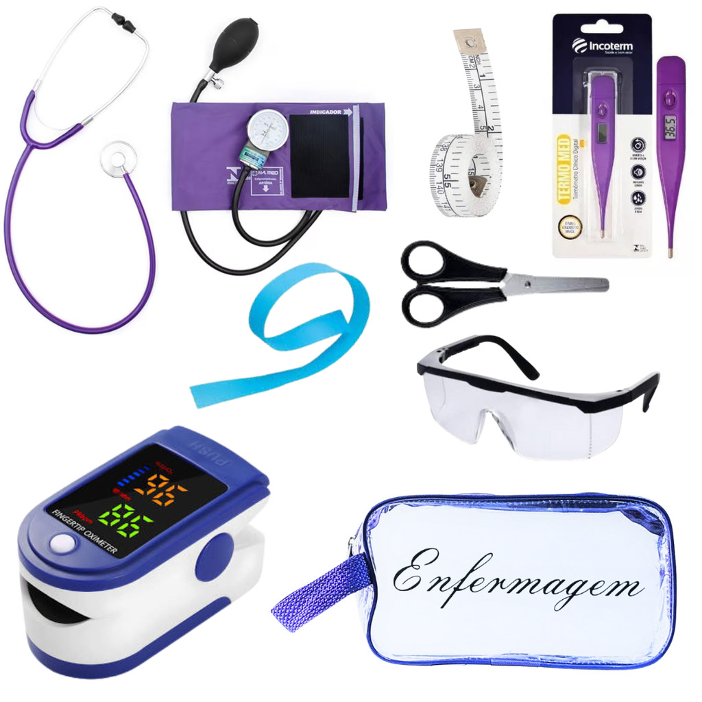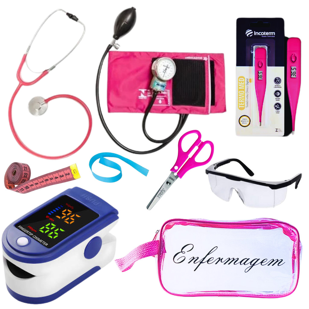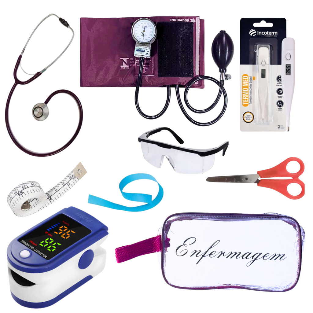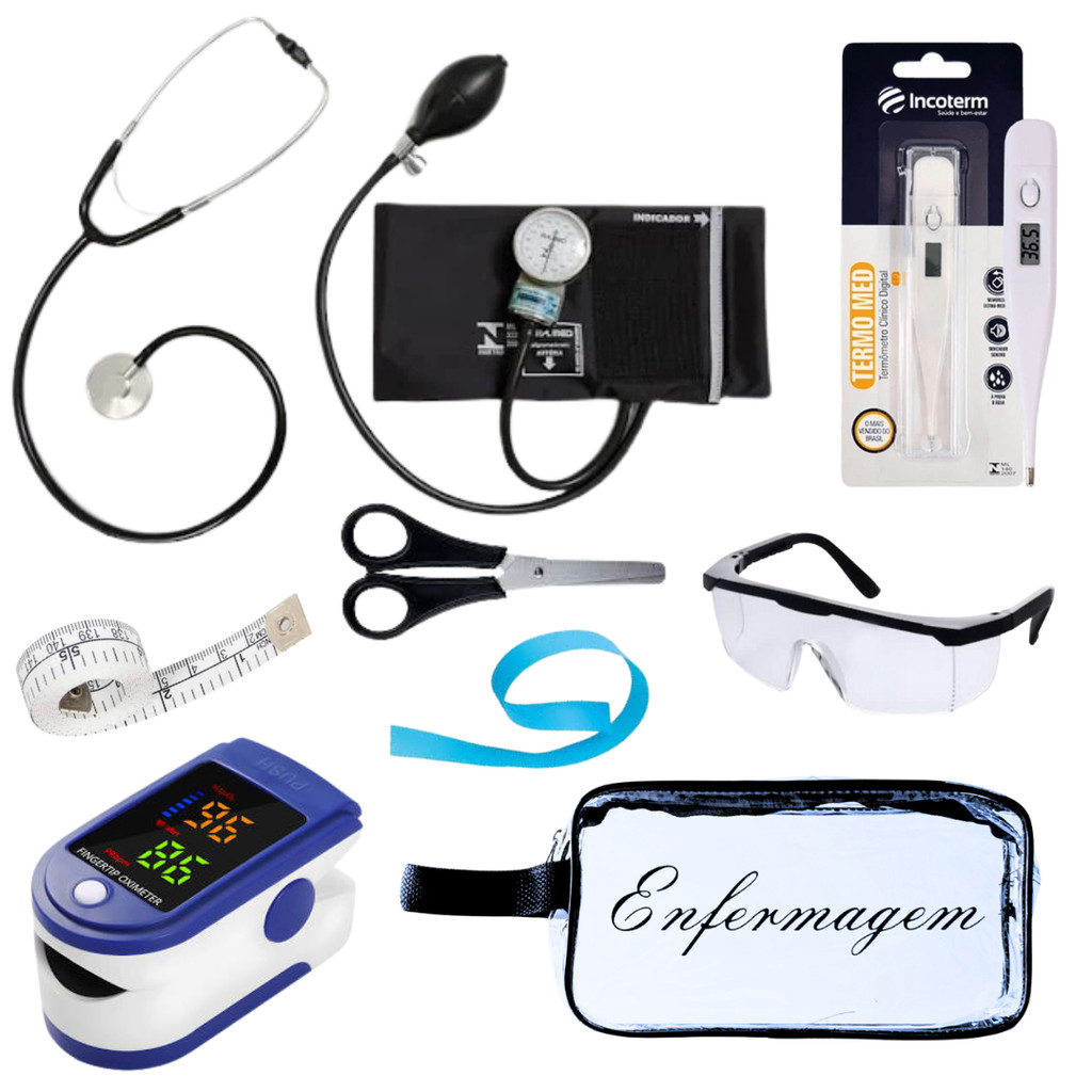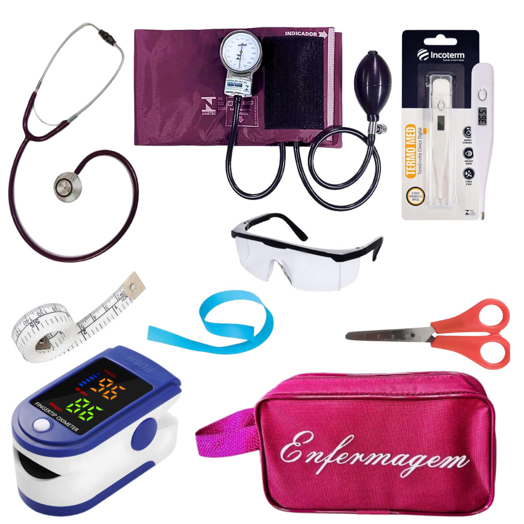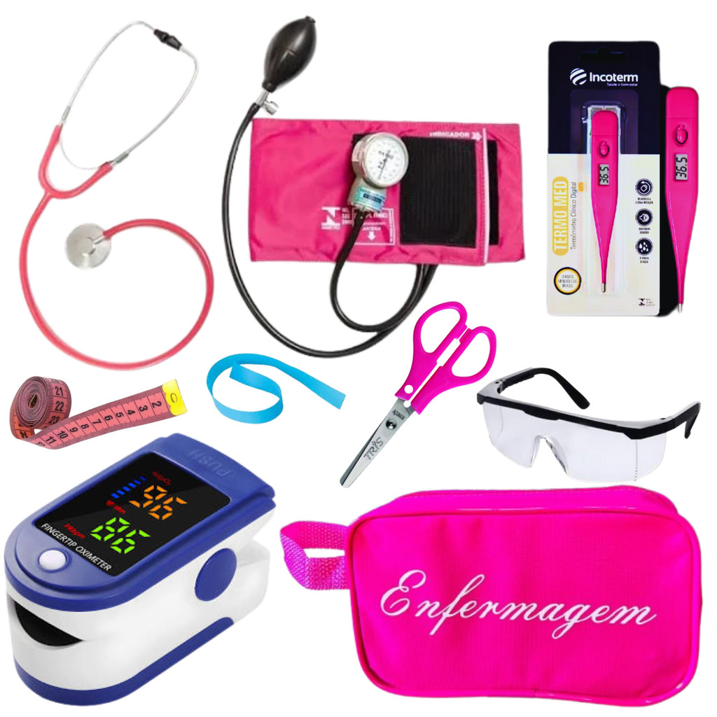 Kit Enfermagem Aparelho de Pressão + Estetoscópio Completo + Oximetro + Nécessaire