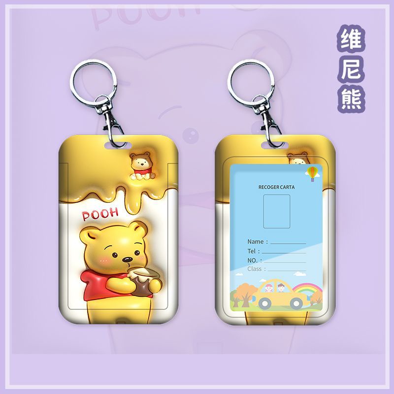 Volta às Aulas Porta-cartões Winnie the Pooh 3D Aumentado com Cordão para Carteira de Estudante