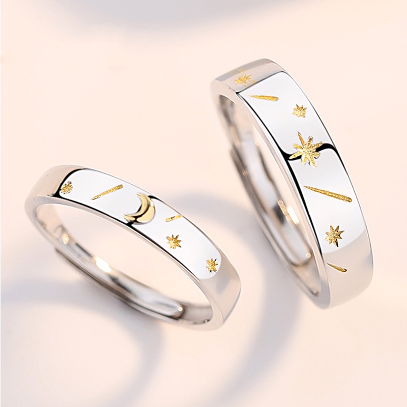 Anel De Casal De Lua Sol Huang Simples Abertura Ajustável Presente Do Dia Dos Namorados