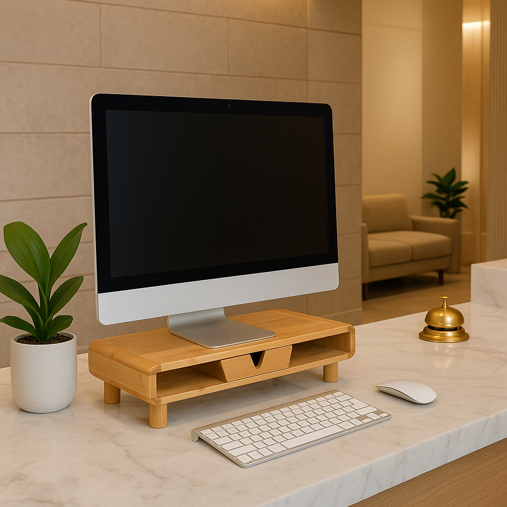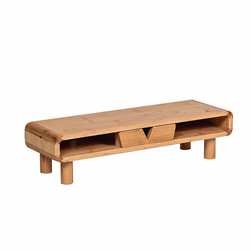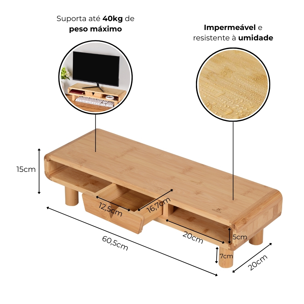 Suporte Base de Bambu p/ Monitor, Mesinha de Apoio p/ Melhorar Postura Organizador Acessórios