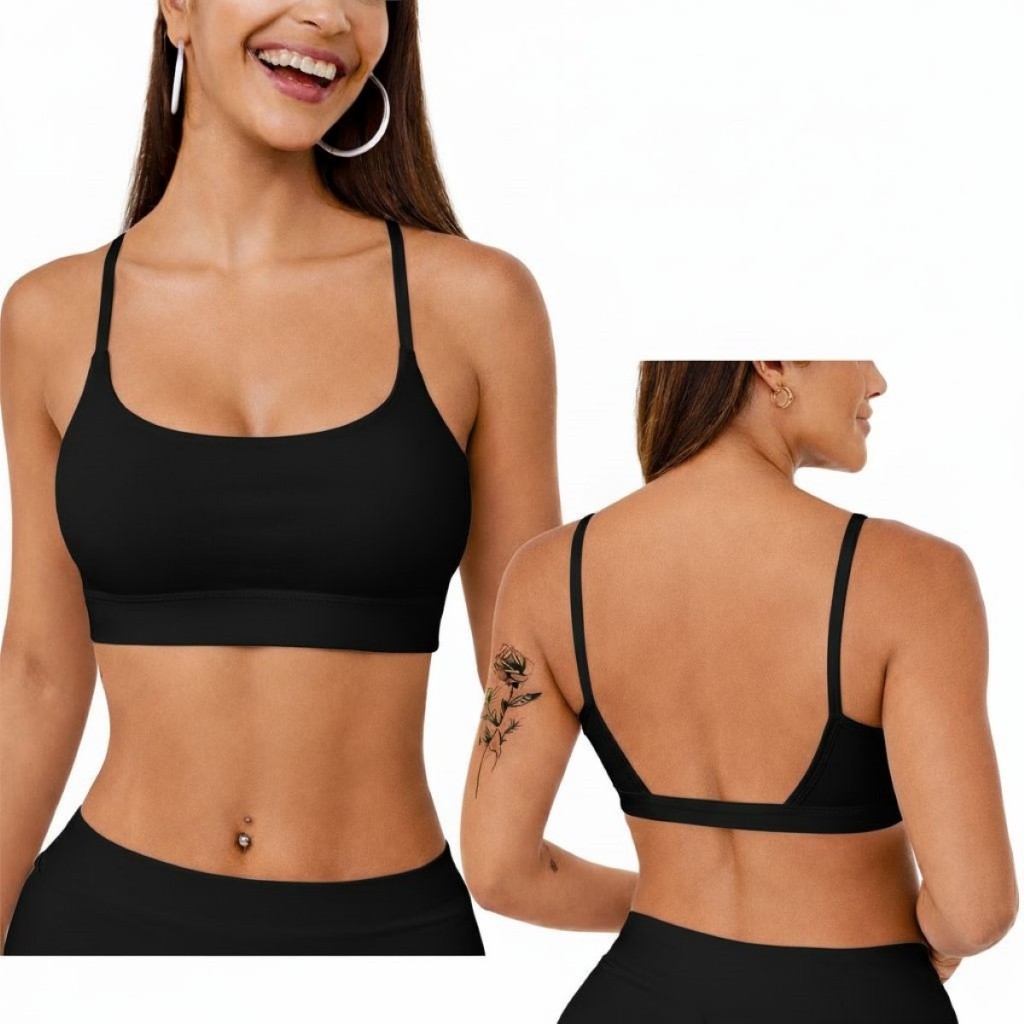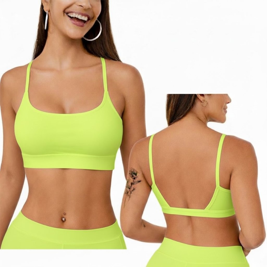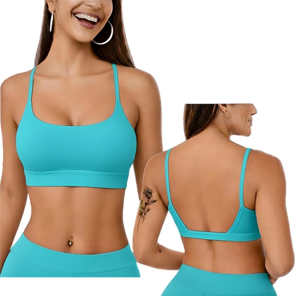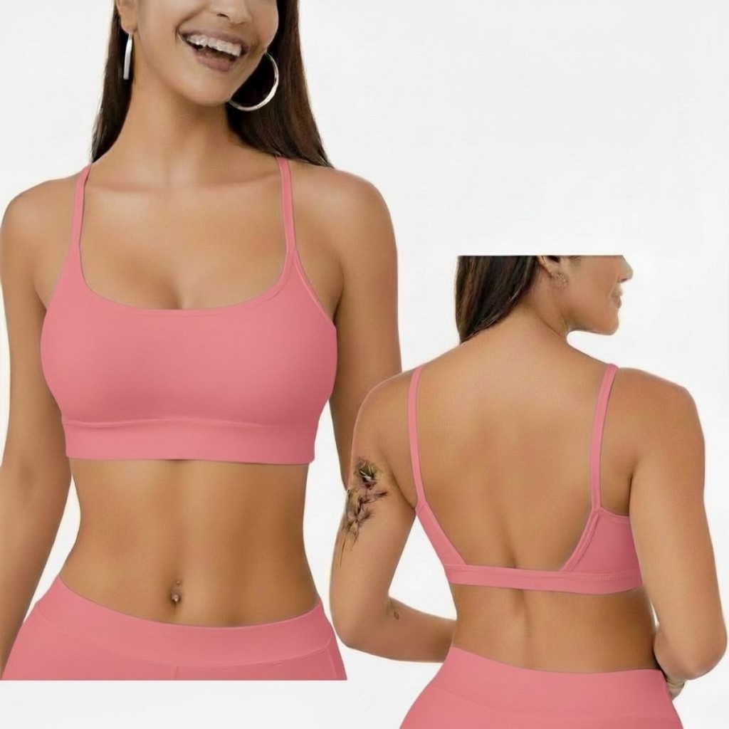 Top Academia Feminino Alça Fina Costas Aberta Bojo Removivel 100% poliamida Fitness Yoga Pilates