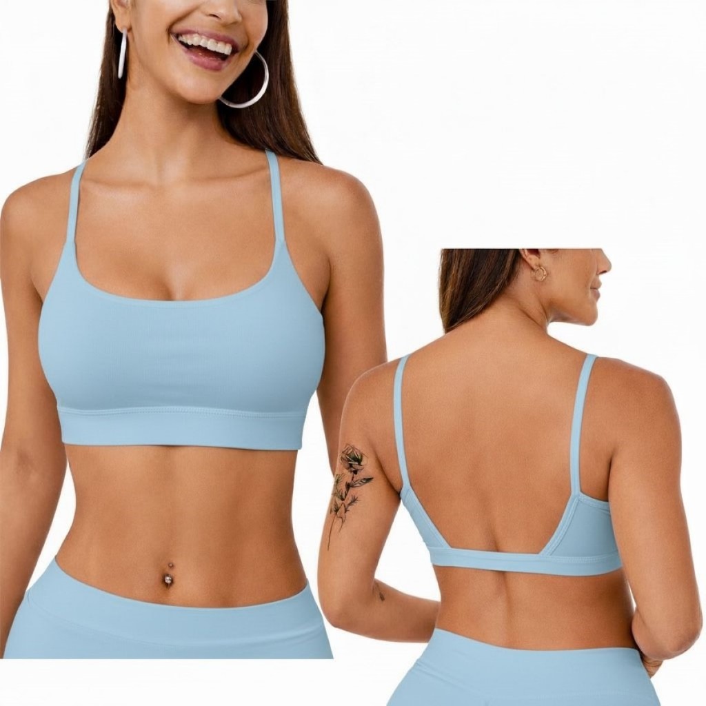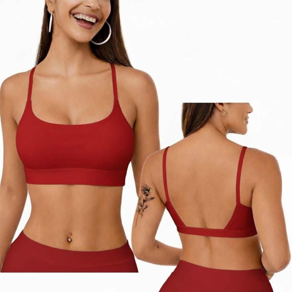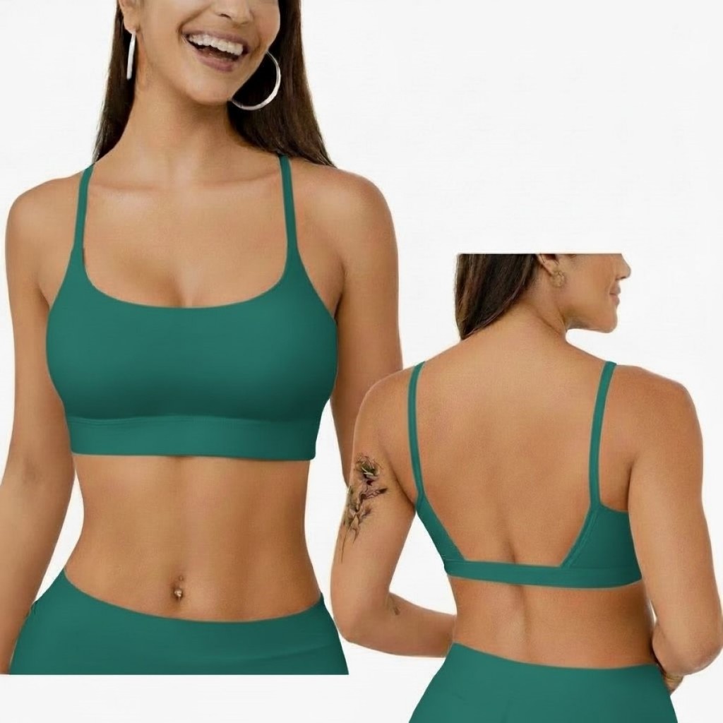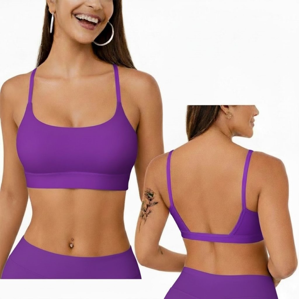 Top Academia Feminino Alça Fina Costas Aberta Bojo Removivel 100% poliamida Fitness Yoga Pilates